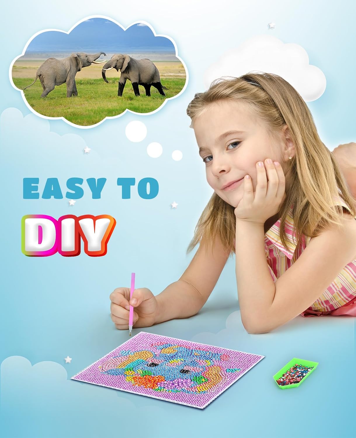 Fun Childhood Memories:This children’s diamond art kits painting set is designed to help cultivate children’s patience, manual dexterity, and focus. Completing this diamond art kits with your child will be a very meaningful bonding activity for both of you.