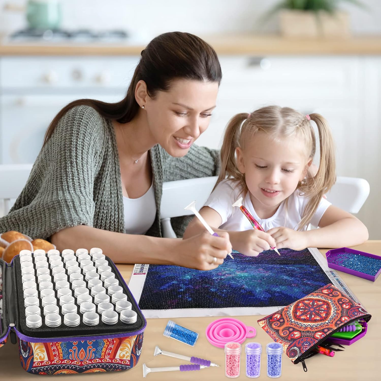 Diamond Painting Storage Containers: There are 120 bottles of diamond storage bottles with foam bases, which can store a large number of diamonds, jewelry beads, pendants, glitter, nail decorations etc. A mesh pocket can perfectly manage all painting tools for you and save space.