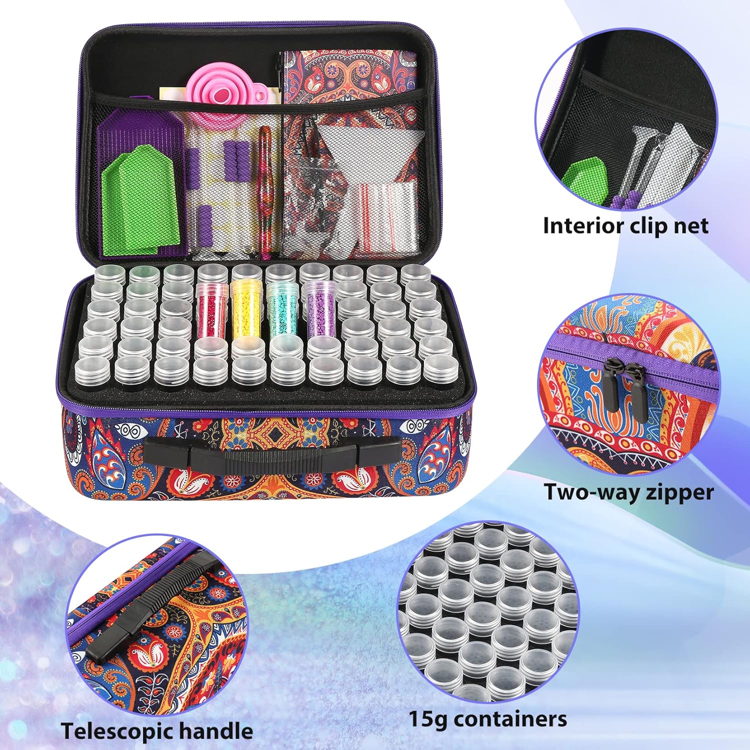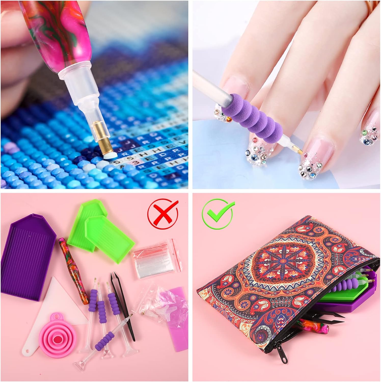 Stylish and Portable: The beautiful pattern is pleasing to the eye, and the handbag design with two-way zipper makes it more convenient for you to travel and carry. It is a perfect diamond painting tool bag that diamond painters want to get. Let you can complete your diamond painting while traveling.