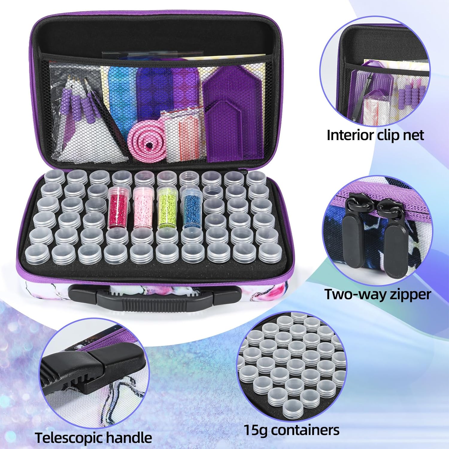 Diamond Painting Storage Containers: There are 60 bottles of diamond storage bottles with foam bases, which can store a large number of diamonds, jewelry beads, necklaces, rings, pendants, glitter, nail decorations etc. A mesh pocket can perfectly manage all painting tools for you and save space.