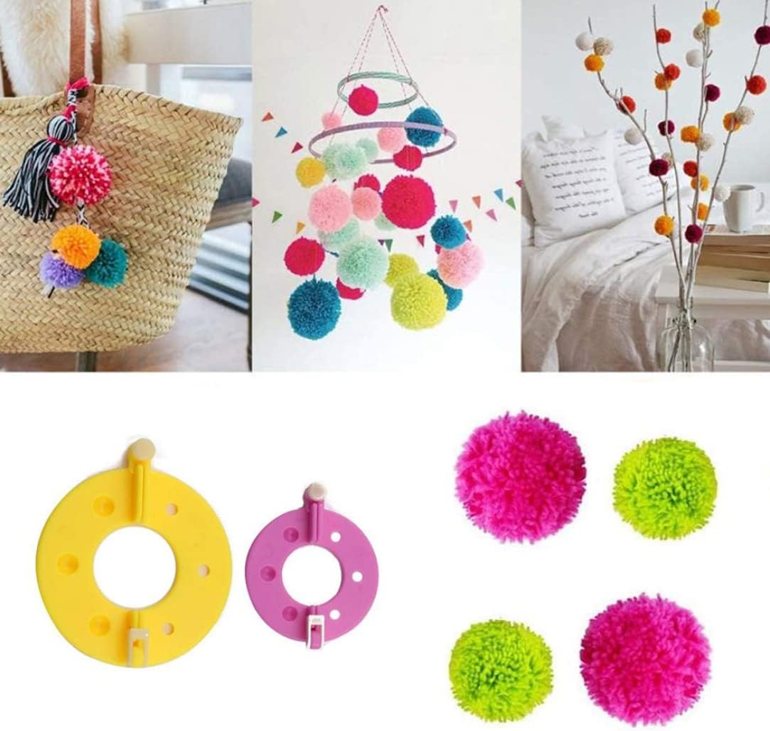 These pompom maker tool sets are made of durable plastic,strong and lightweight which are colorful appearance and easy to carry. Easy to wind the wool around the plastic pompom maker on two sides and cut the wool,wrap a yarn tie a secure knot at the middle,good for you to make pom poms and crafting.
