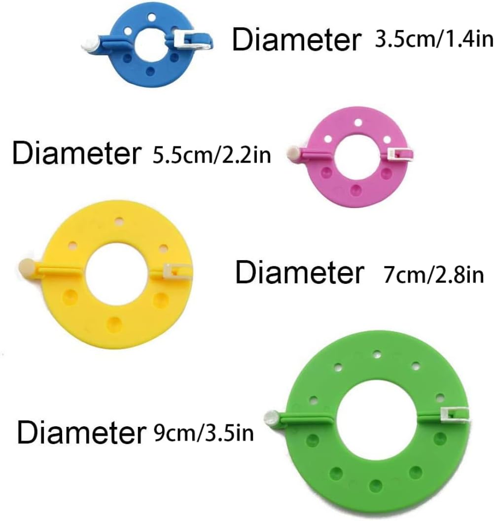 These pompom maker tool sets are made of durable plastic, strong and lightweight which are colorful appearance and easy to carry. Easy to wind the wool around the plastic pompom maker on two sides and cut the wool, wrap a yarn tie a secure knot at the middle, good for you to make pom poms and crafting.