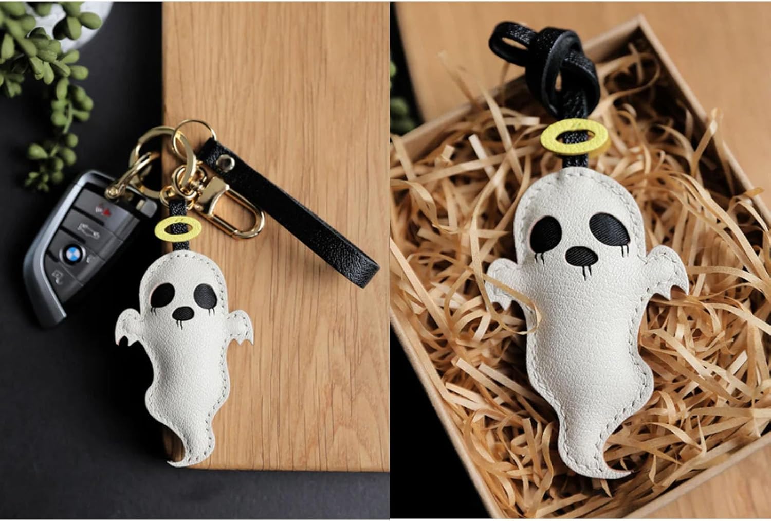 【DIY Keychain Making Kit】This leather keychain kit is a little ghost style, a semi-finished DIY key chain kit, made of goatskin leather, super soft and durable.