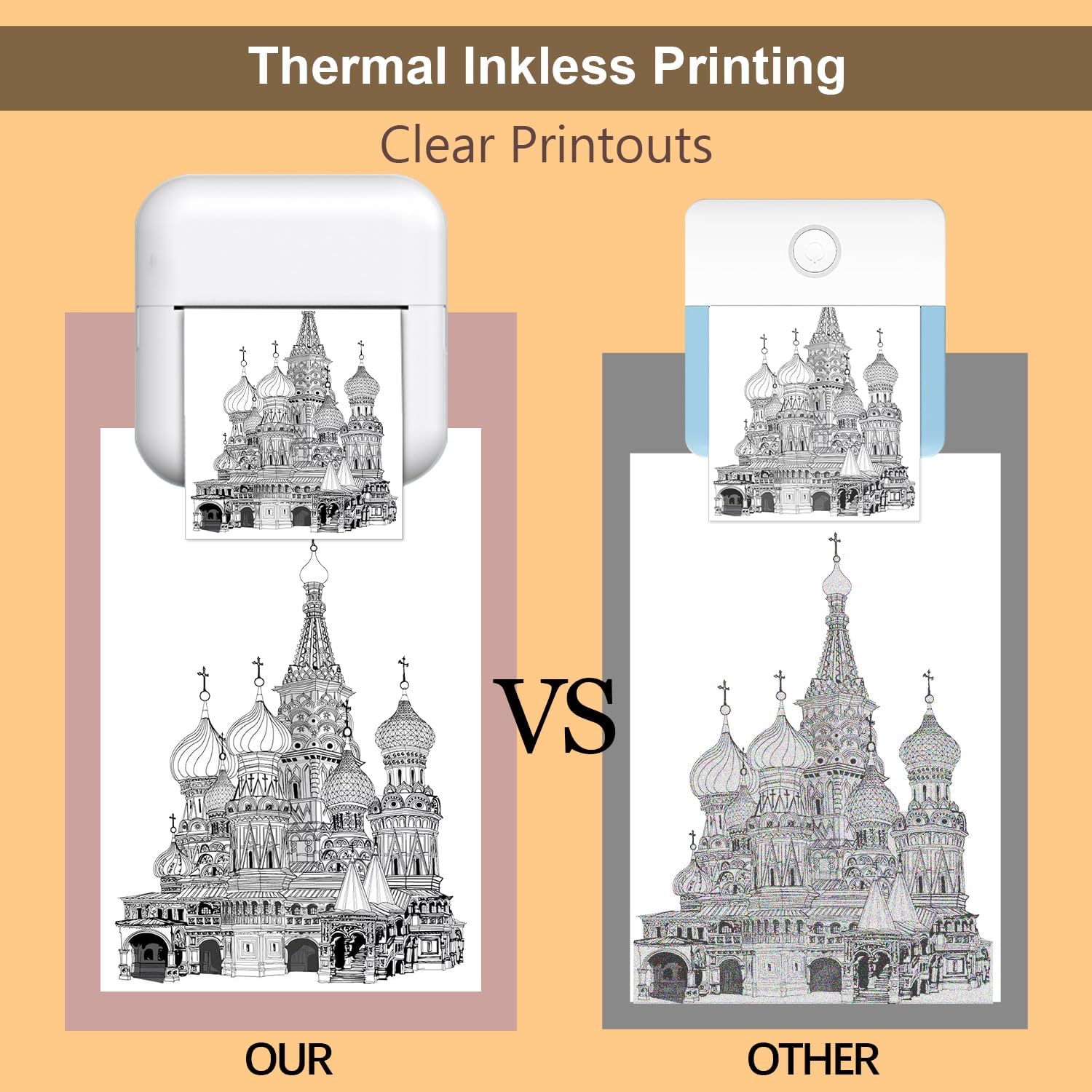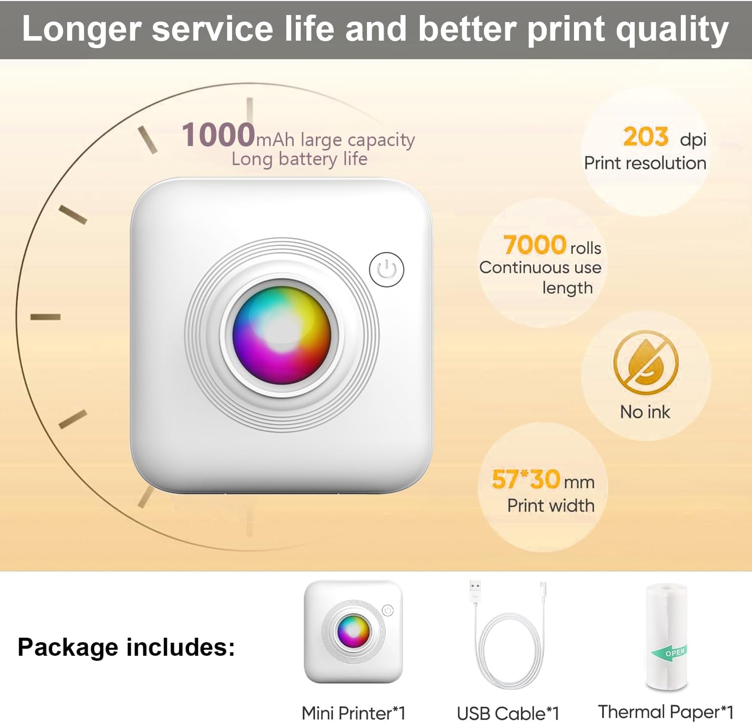 【MULTIFUNCTIONAL INKLESS PRINTER】This inkless pocket printer is perfect for printing black and white pictures/photos, memos, shopping lists, study/meeting notes, business and work schedules, office aids, labels, messages, checklists, web pages, QR codes and records. It is suitable for a variety of applications such as offices, homes, students, children, amateur archivists, busy moms, and more. It is also a perfect gift for kids during holidays, Christmas, New Year and birthdays.