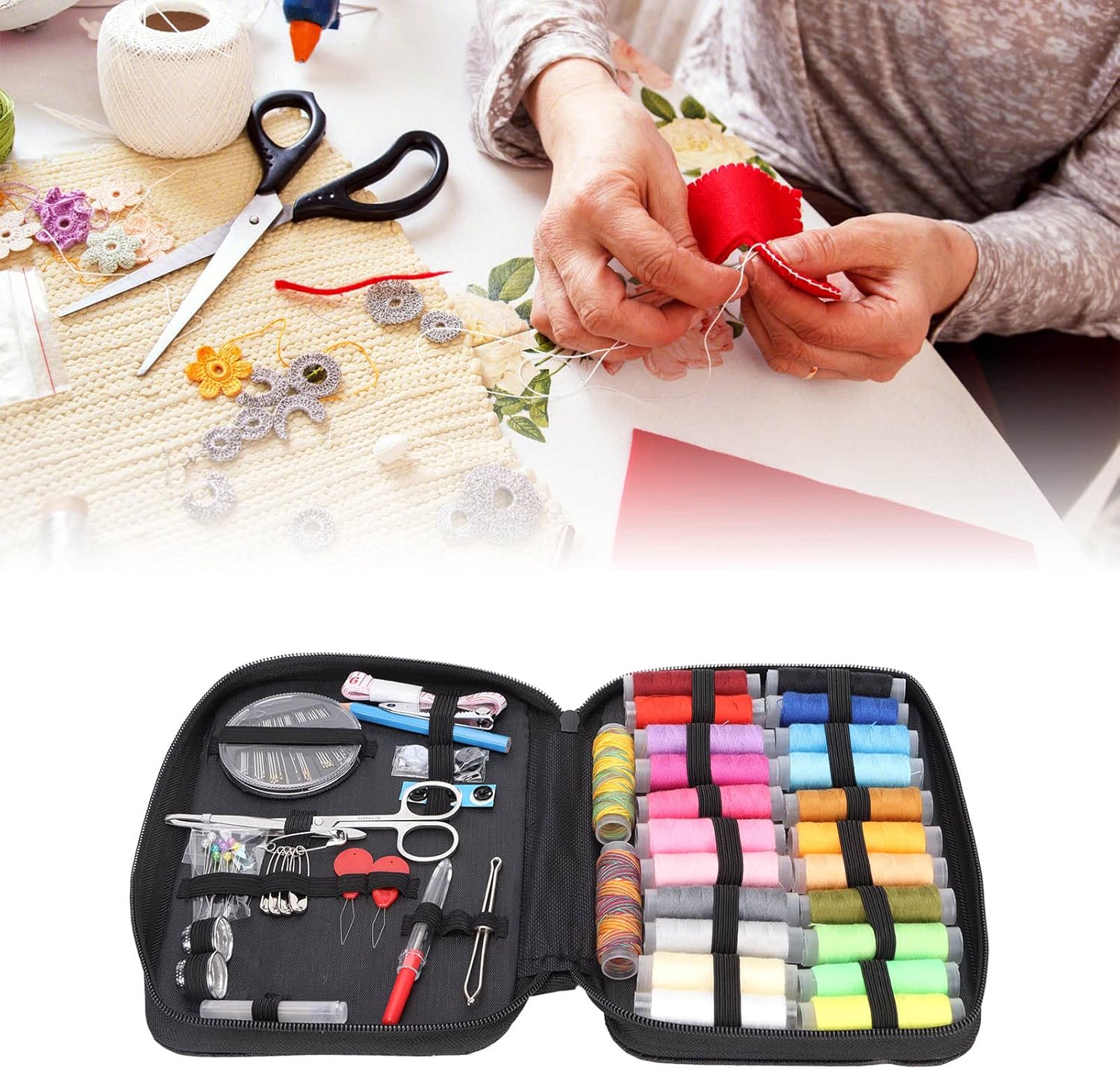 [Portable] neatly organized in a soft box, easy to carry. Easier to store than sewing boxes or plastic storage boxes. You can easily make sewing suits. Be prepared for any scene you need.