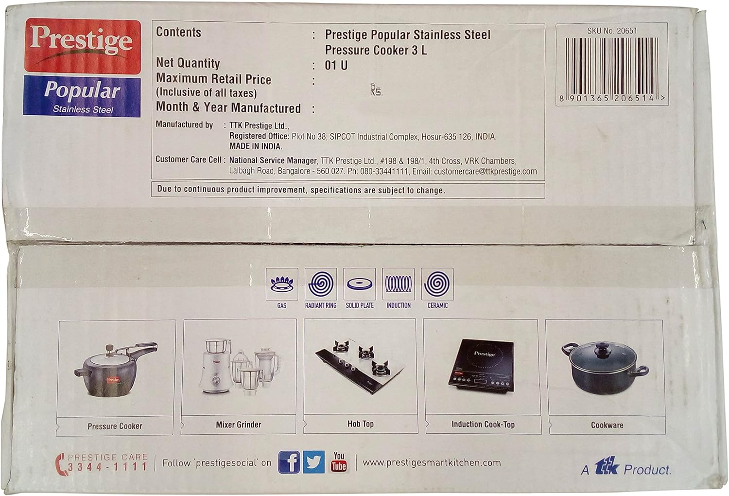 Prestige Popular Stainless Steel Pressure Cooker – 3 Litre