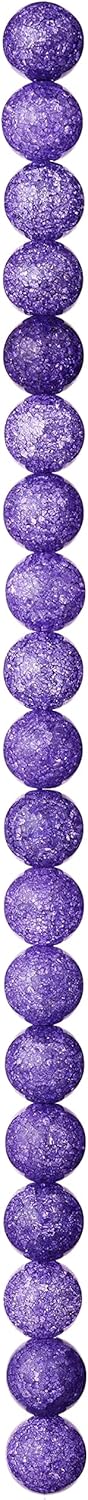 Purple. 10 mm bead size. 7” (17.7 cm) string length. Crackled finish. Round. Quartz.