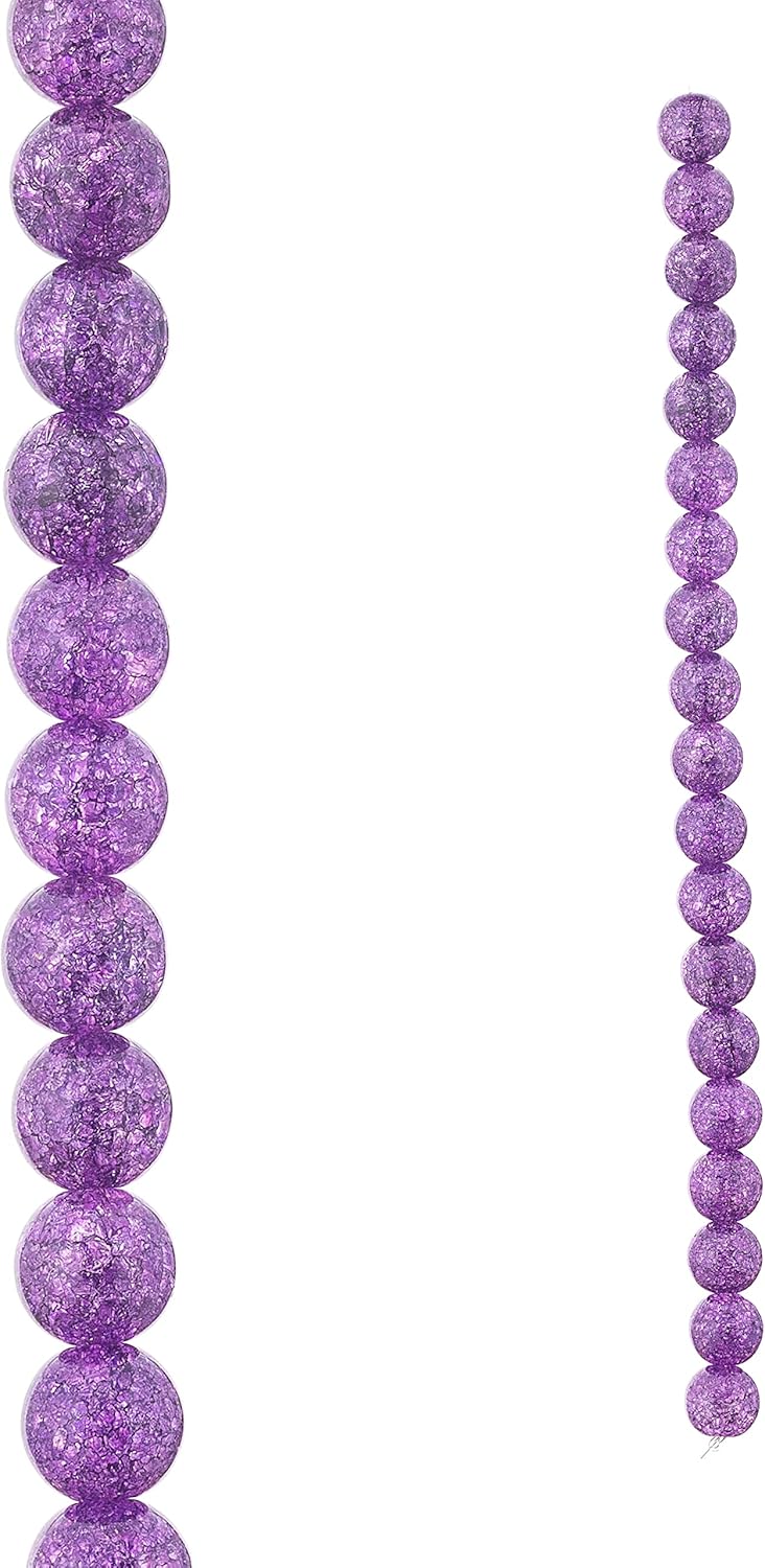 Purple. 10 mm bead size. 7” (17.7 cm) string length. Crackled finish. Round. Quartz.