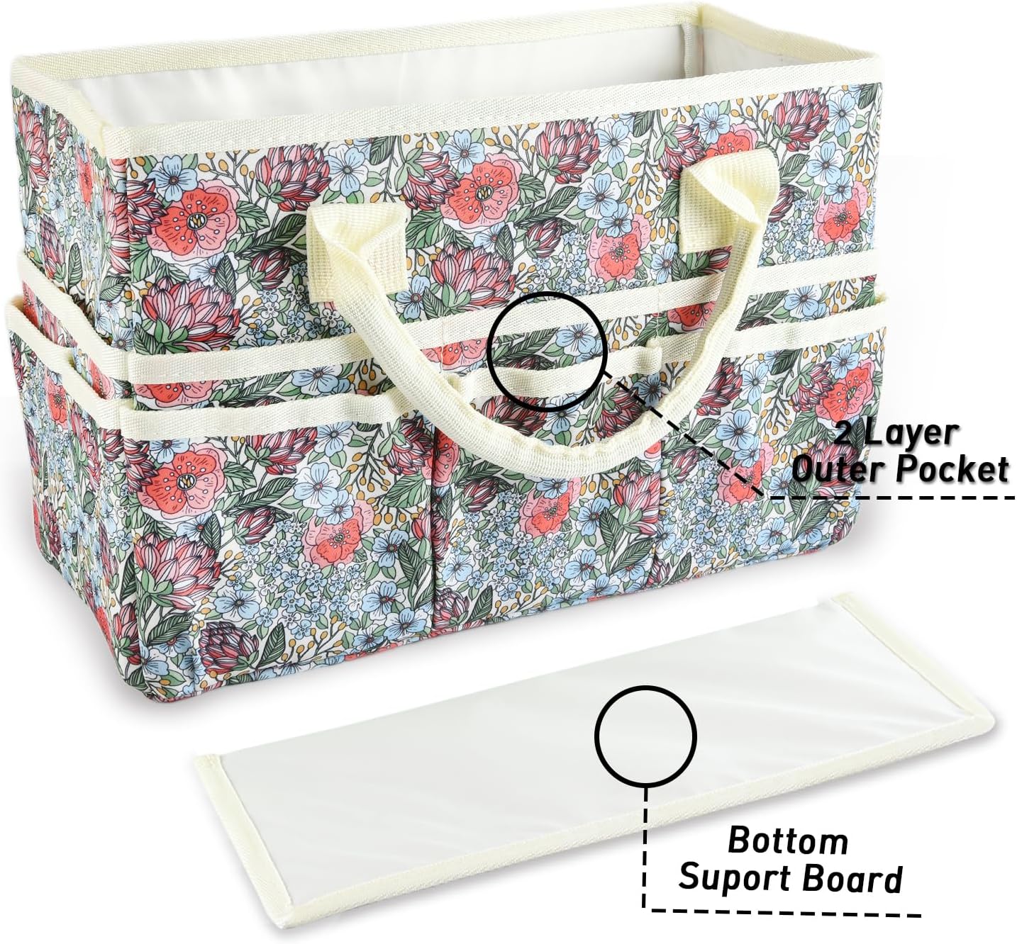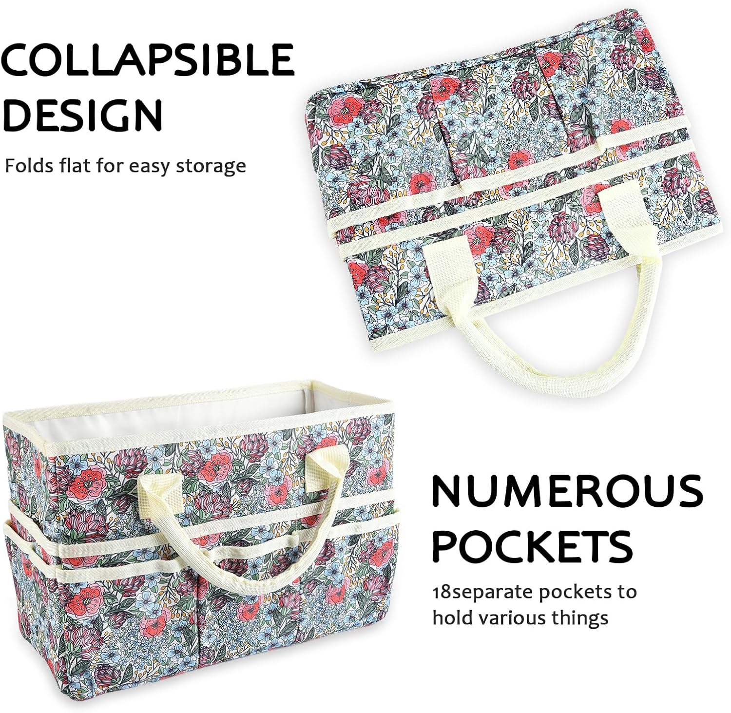 qianshan Craft Organizer Bag with Multiple Pockets, Large Art Storage Caddy with Handles for Art, Craft, Sewing, Make-up,Scrapbooking, Medical, and Office Supplies Storage.Blooming Flowers