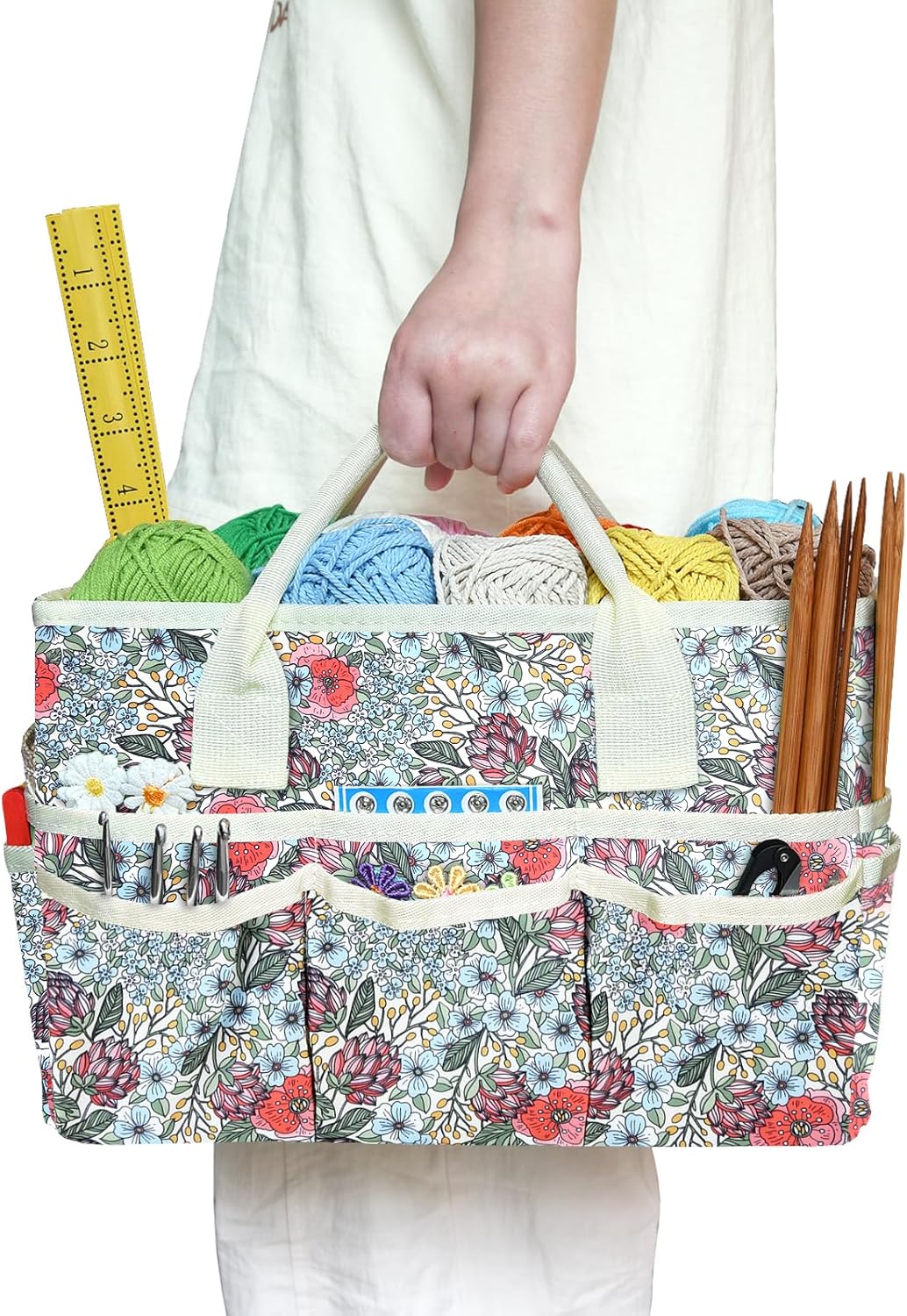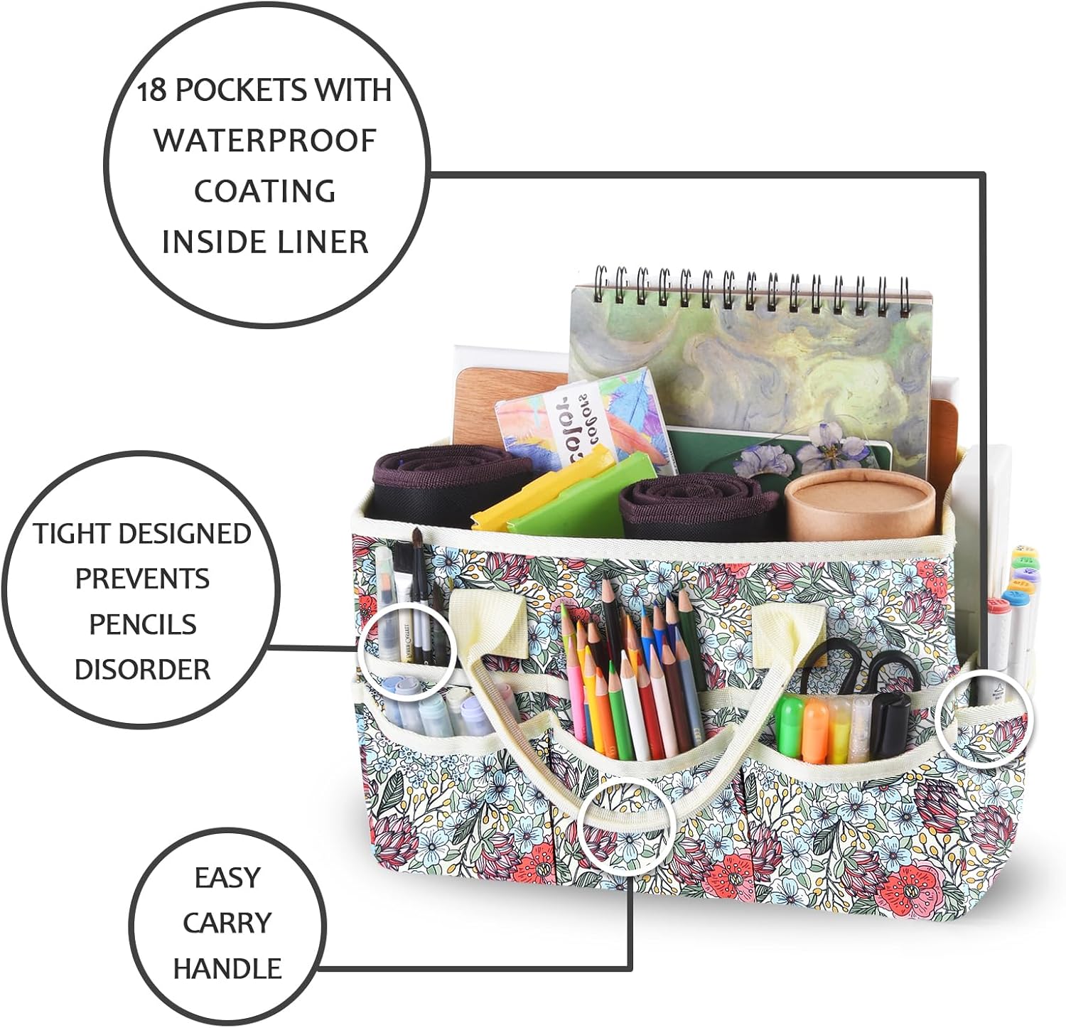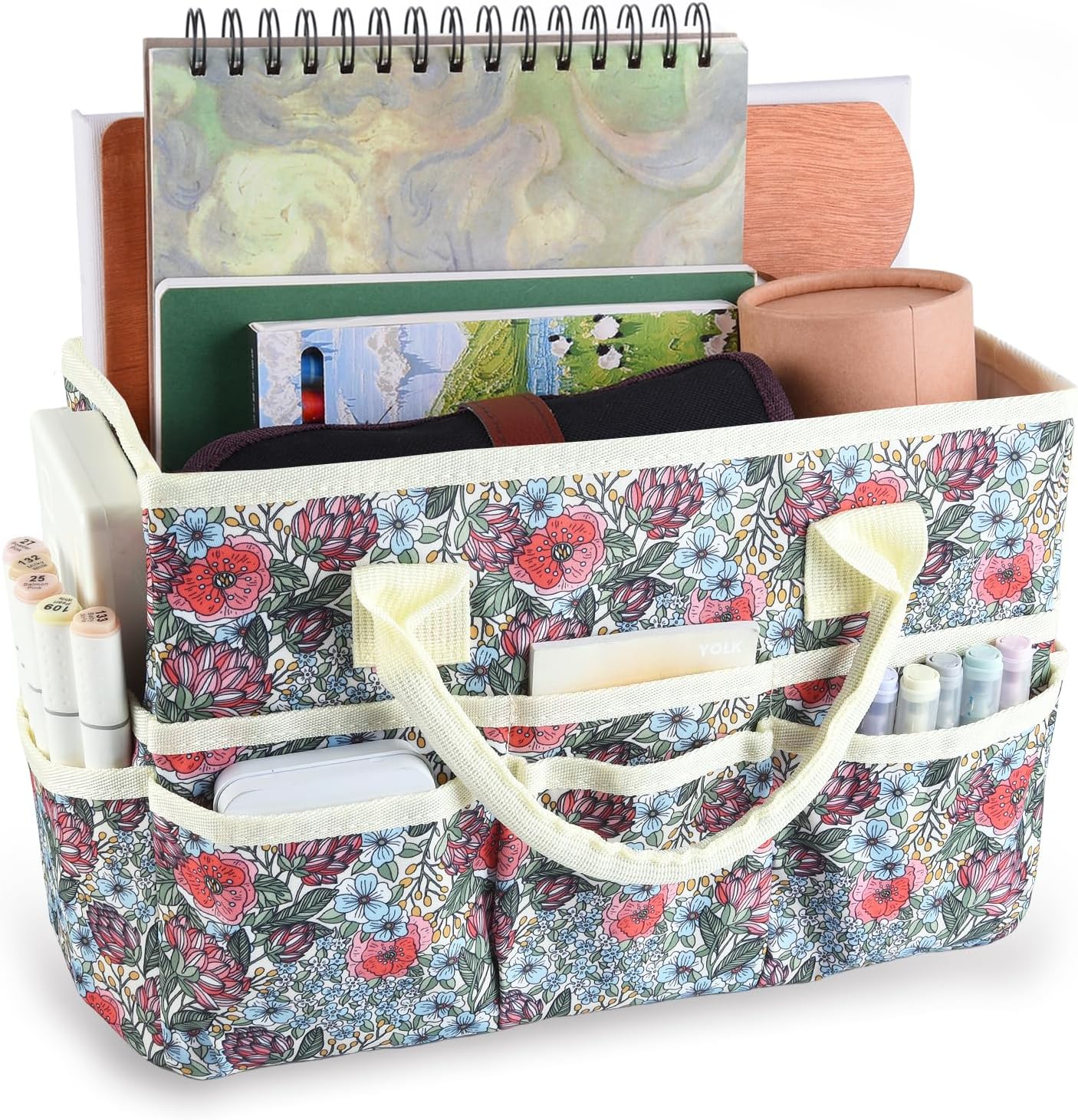 qianshan Craft Organizer Bag with Multiple Pockets, Large Art Storage Caddy with Handles for Art, Craft, Sewing, Make-up,Scrapbooking, Medical, and Office Supplies Storage.Blooming Flowers