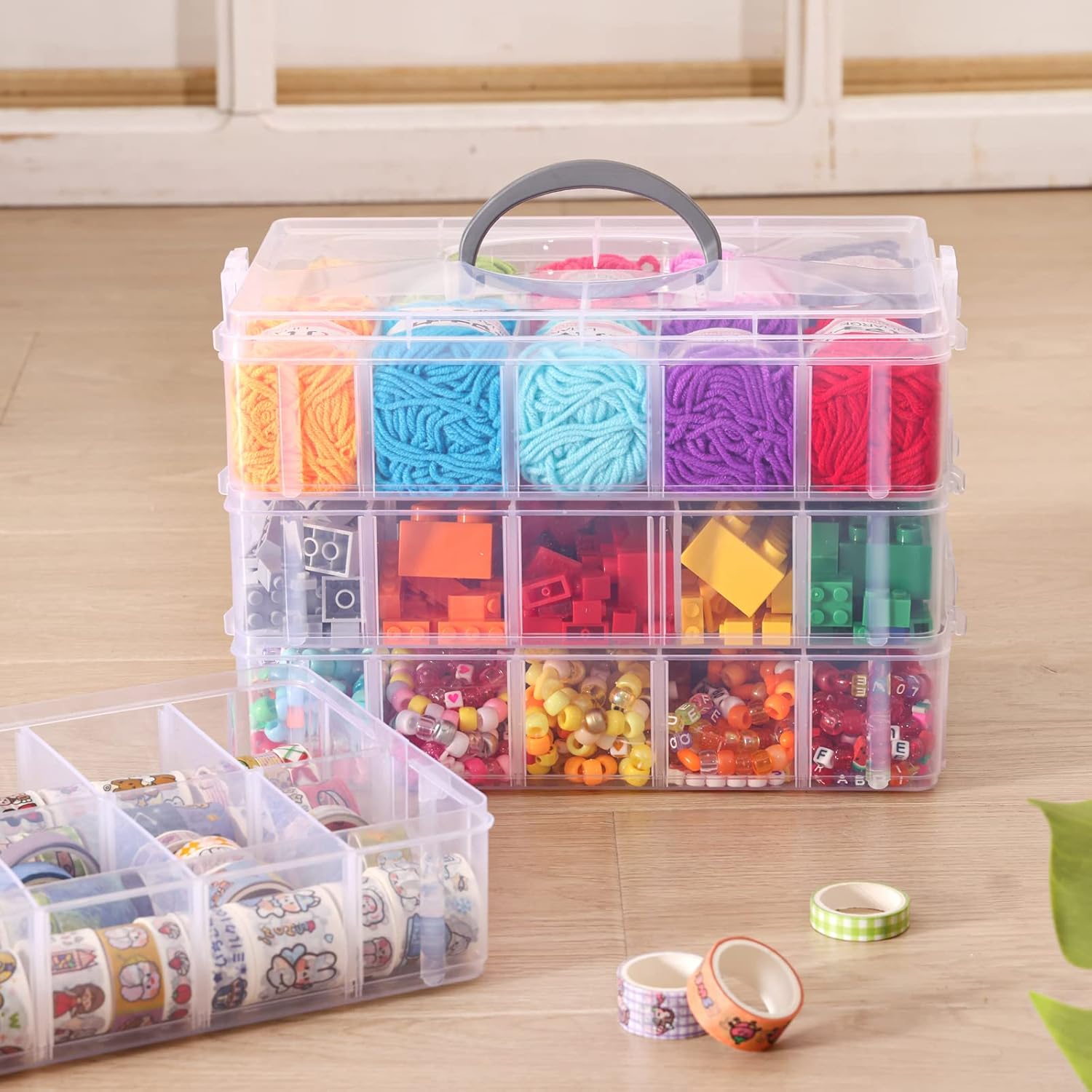 Sufficient Space: Each box has 4 layers of Stackable Storage Container, 10 grids per layer, and a total of 40 adjustable compartments, that conveniently snap together to save valuable floor space.