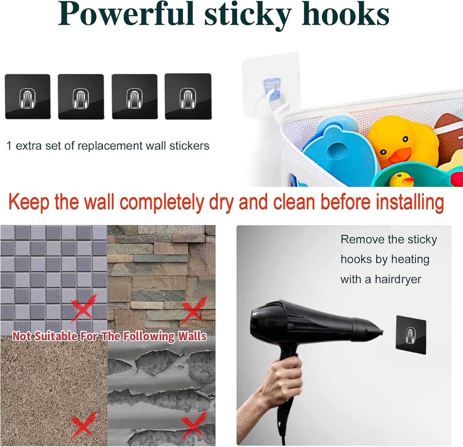 Quickly fetchLarge openingLarge capacitySpace-savingDrain and dry quicklyPowerful wall stickers