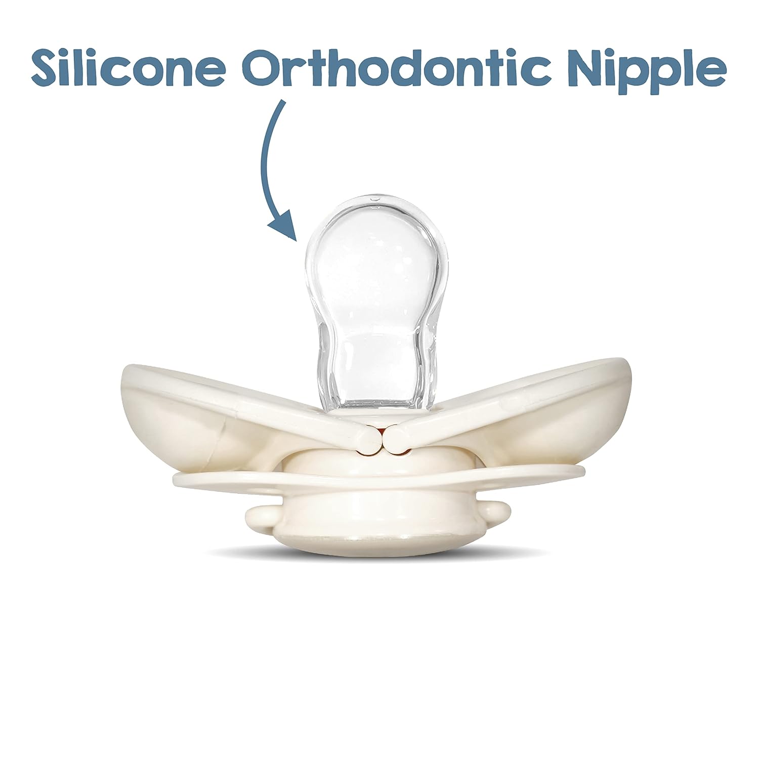 INCLUDES 2 PACIFIERS: Each purchase includes 2 premium baby pacifiers in a variety of beautiful colors and characters. Nipple is all silicone and one size fits all (0-36m). Makes the perfect gift for baby girls and baby boys.