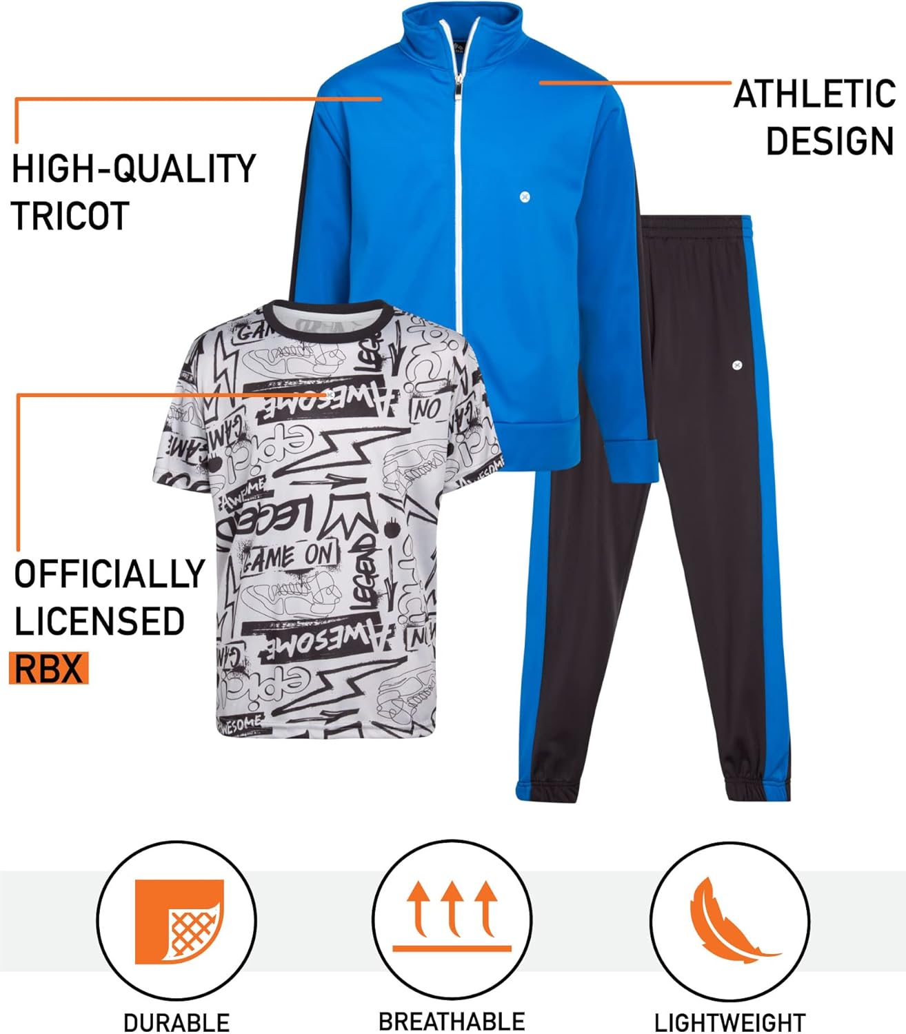 RBX Boys’ Jogger Set – 3 Piece Tricot Sweatshirt, Sweatpants, and T-Shirt Tracksuit (8-12)
