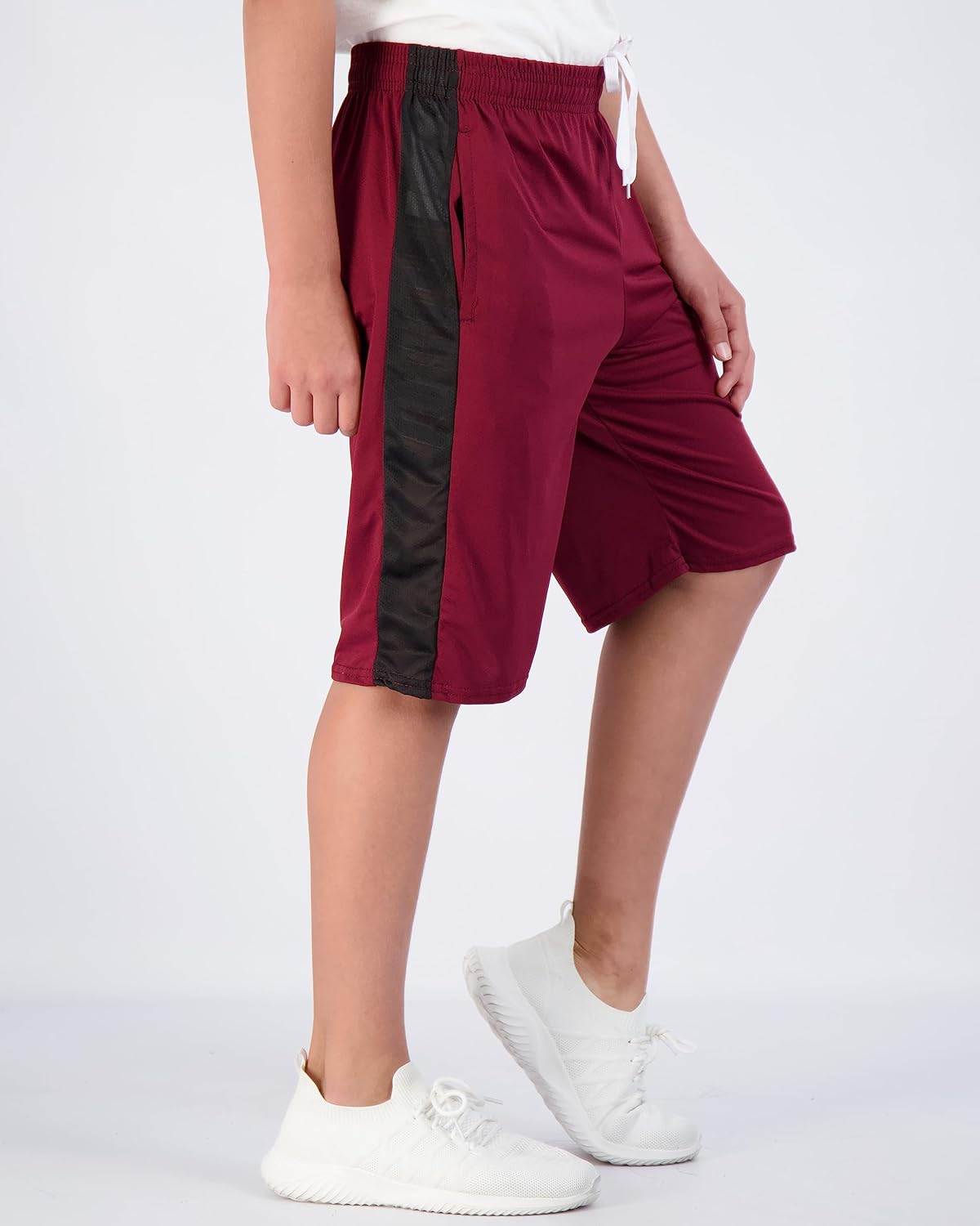 Real Essentials 5-Pack Boys’ Dry-Fit Active Athletic Performance Basketball Shorts with Pockets