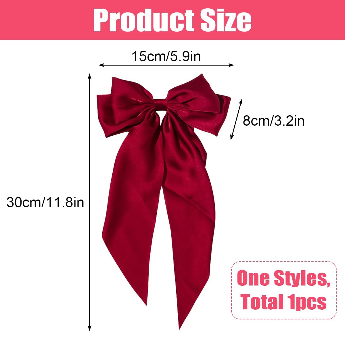Red Silky Bow Hair Barrettes Jumbo Bow Clip with Tails Hair Bow Clip For Woman Girls Satin Hair Barrettes Clip Large Bow Hair Slides French Barrette Long Tail Bowknot Hairpin,Clips and Barrettes