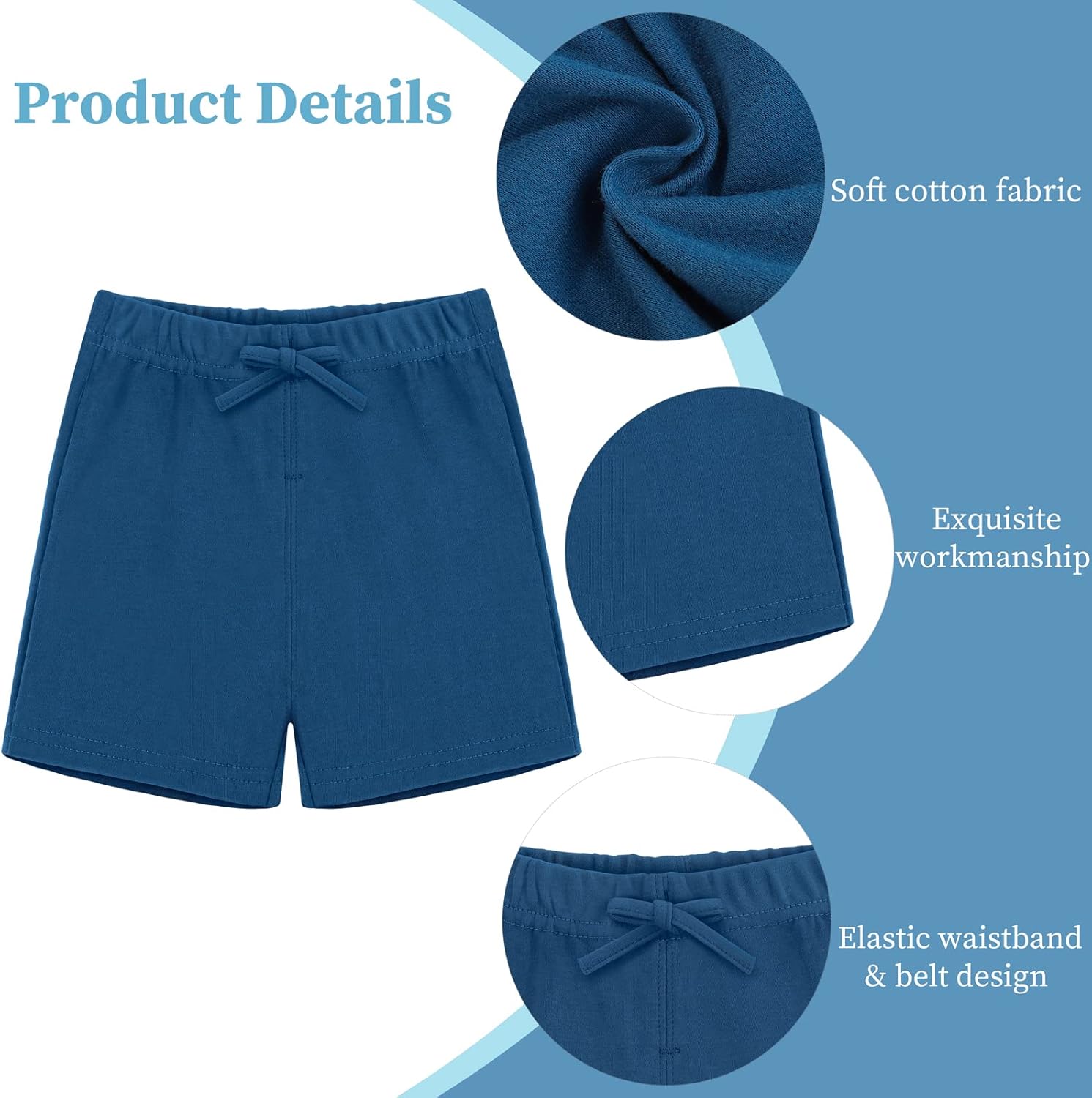 Resinta 6 Packs Unisex-Baby Shorts Breathable Cotton Short with Drawstring Baby Solid Color Shorts for Toddler Kids