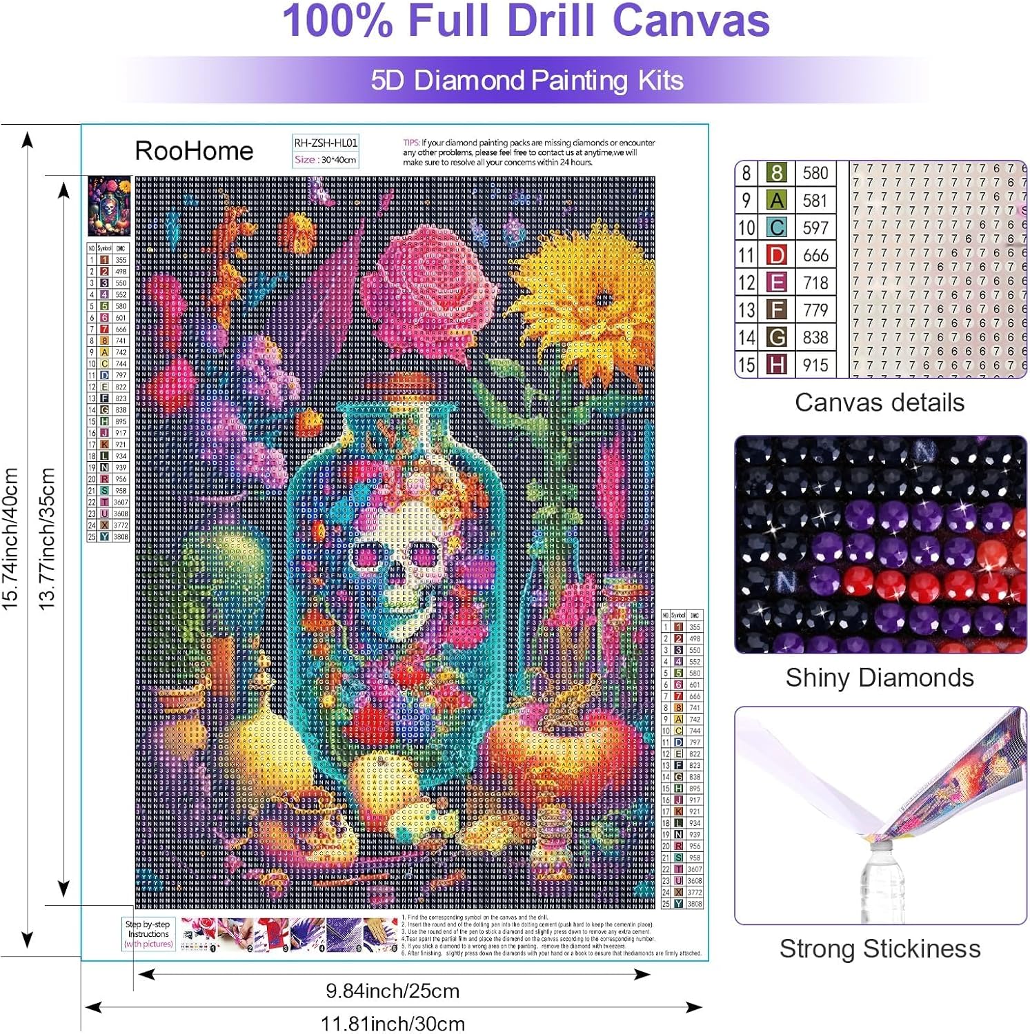 ROOHOME 5D DIY Skull Diamond Art Kits for Adults- Handmade Gift Horror Skeleton Potion Diamond Art Painting Kits-Paint by Numbers Kit Fantasy Diamond Gem Arts and Crafts for Wall Decor