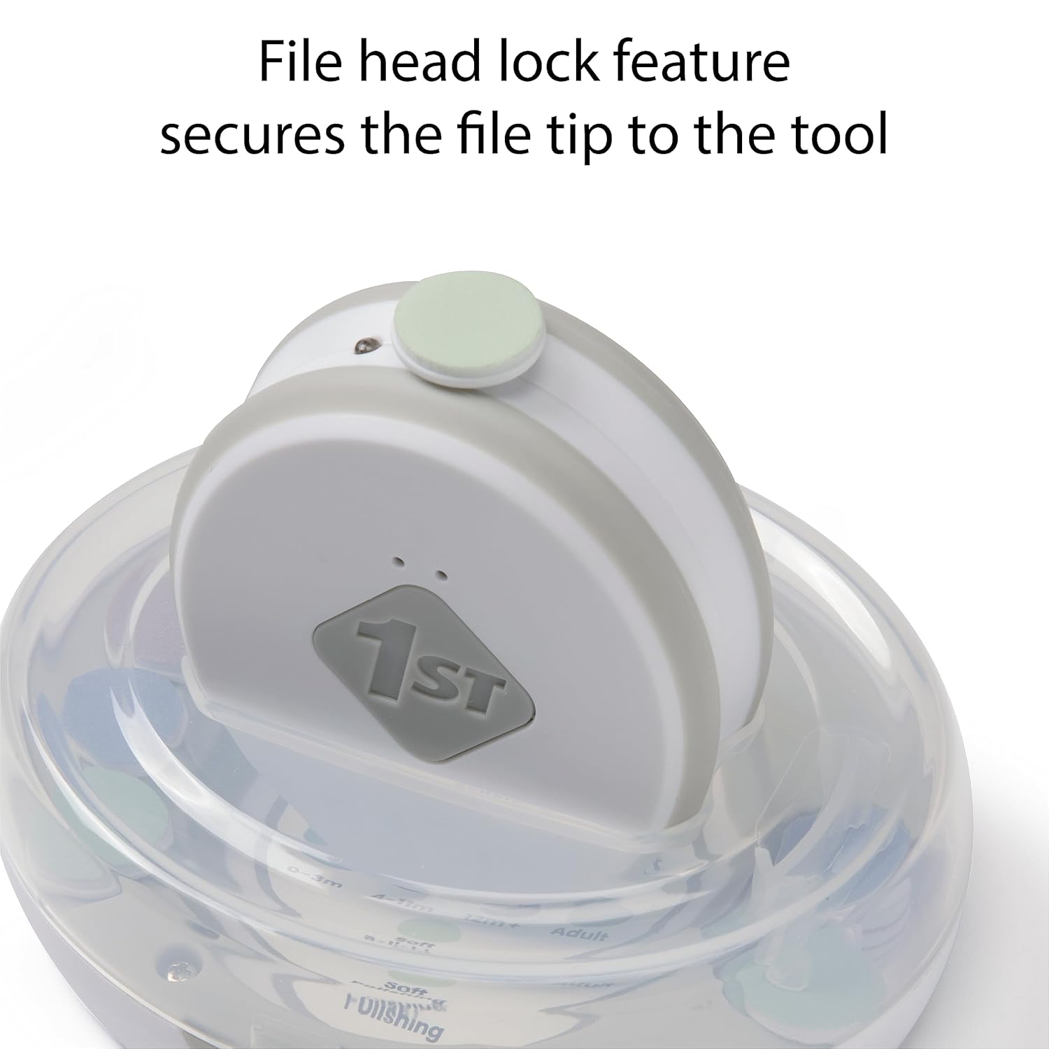 FILE HEAD LOCK FOR ADDED SAFETY The file head lock feature secures the file tip to the tool and prevents your child from removing it.