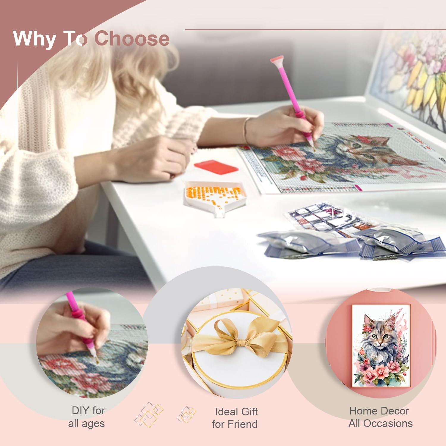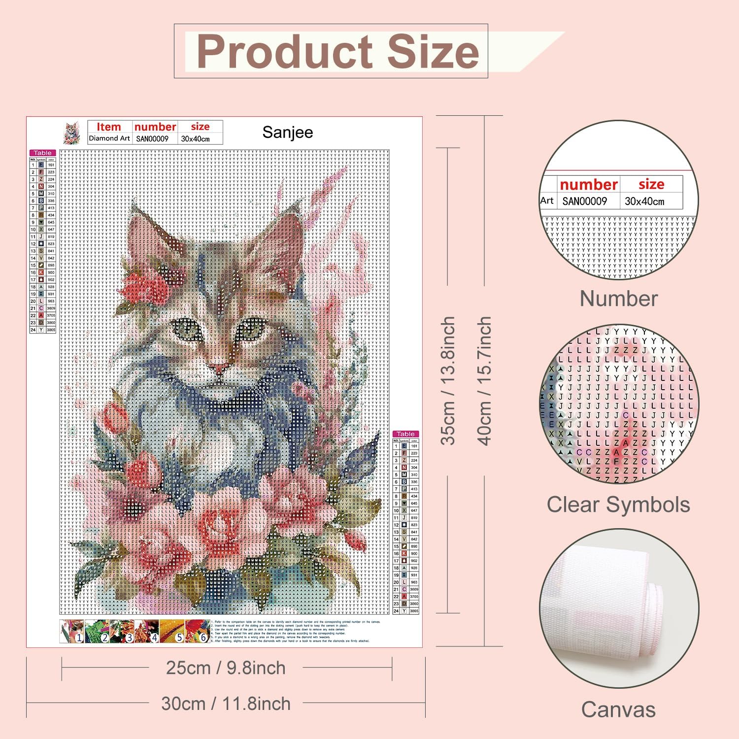 Sanjee Diamond Painting Kits Cat for Adults – Round Full Drill Diamond Dots Paintings for Beginners, DIY 5D Diamonds Gem Art and Crafts for Home Wall Decor 12x16inch, Animal