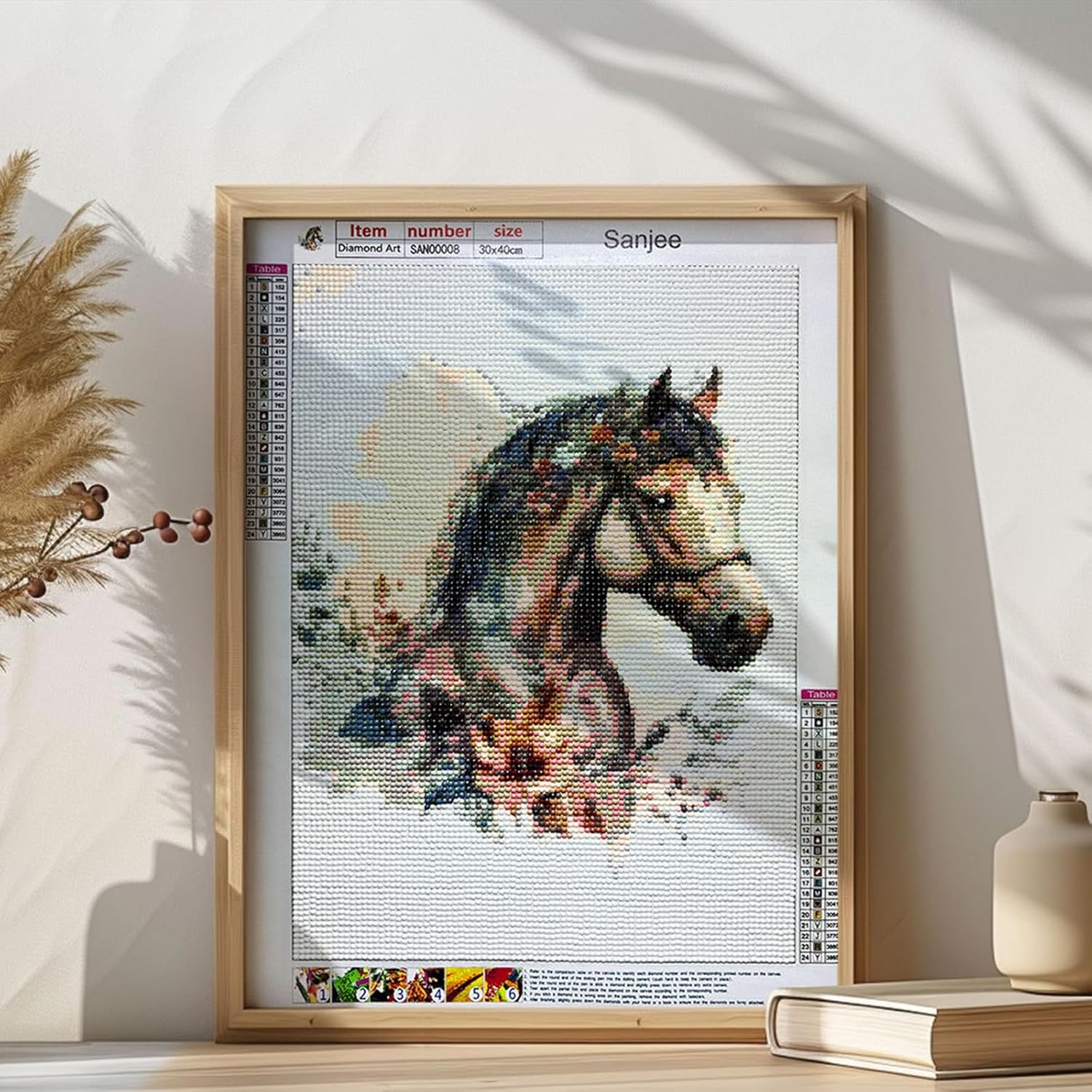 Sanjee Diamond Painting Kits for Adults, Diamond Art Kits Horses for Beginners, 5D DIY Full Drill Diamond Dots Paintings, Gem Art and Crafts for Adults Home Wall Decor 12x16inch, Animals