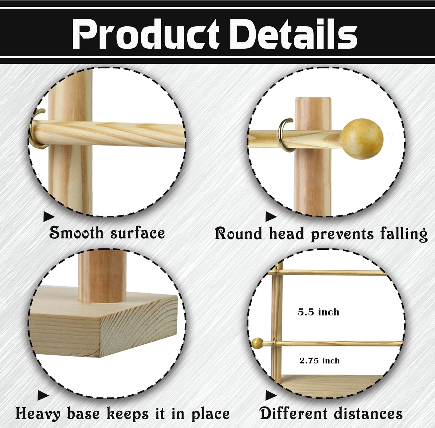 Easy Installation: The product includes 1 base stand measuring ( 15.75 inch x 3.94 inch x 0.59inch ) and 2 vertical bars measuring 15.75 inch in height and 0.79 inch in, diameter (Each vertical bar has 3 hanging hooks), and 3 horizontal bars for hanging on the 6 hooks of the 2 vertical bars), and 6 double-ended round bits for the 3 horizontal bars. Assembly is straightforward following the instructions provided, and with all the hardware included, you will easily assemble them together.