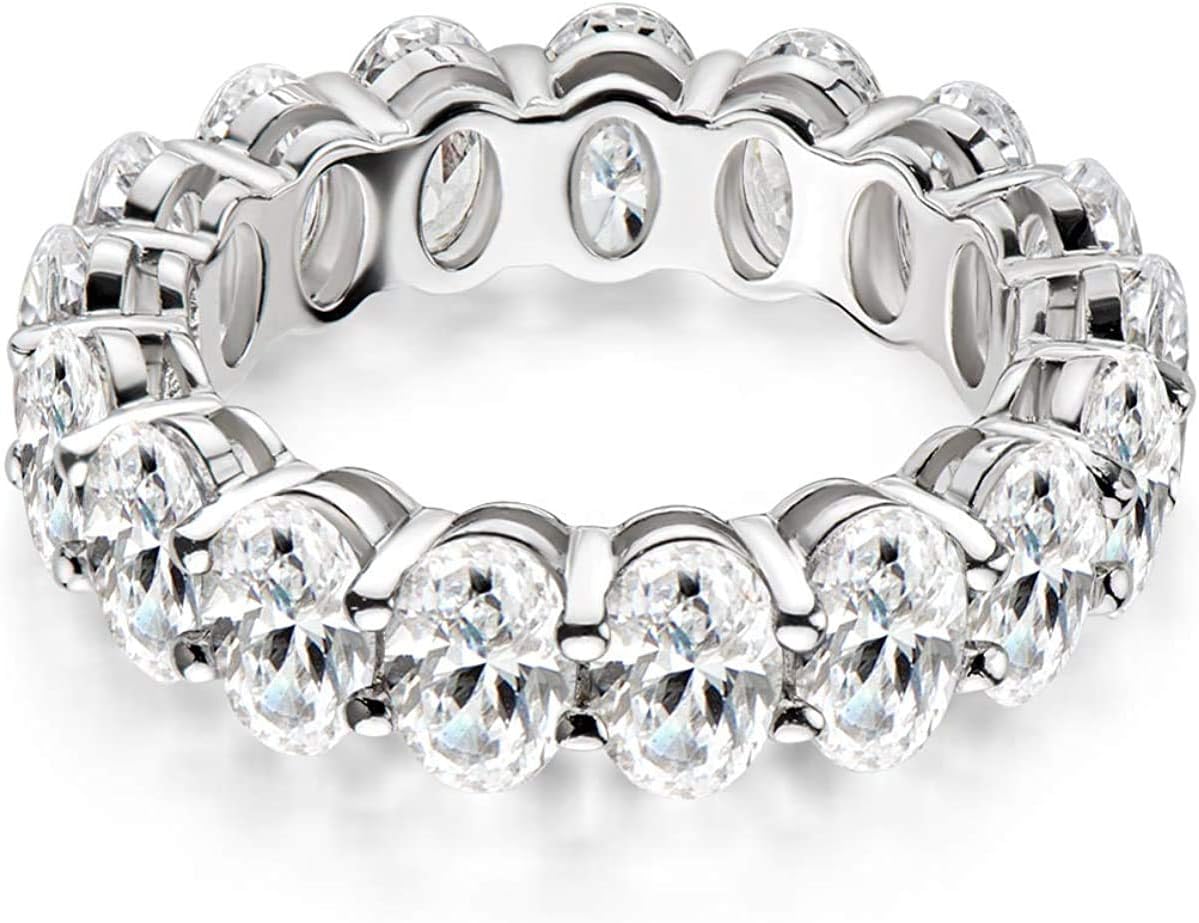 Savlano 18K White Gold Plated Cubic Zirconia Oval Cut Eternity Ring Band for Women & Girls