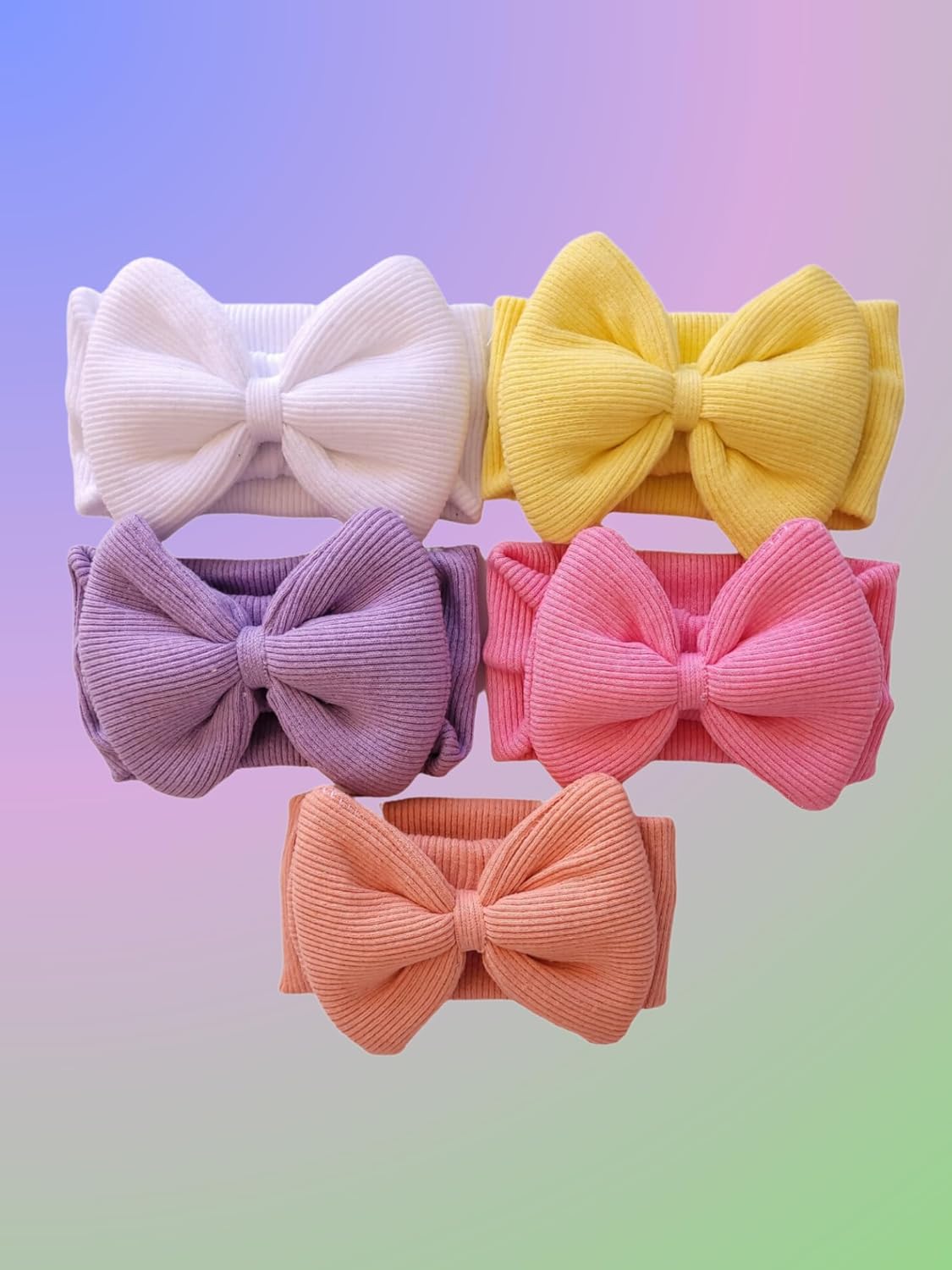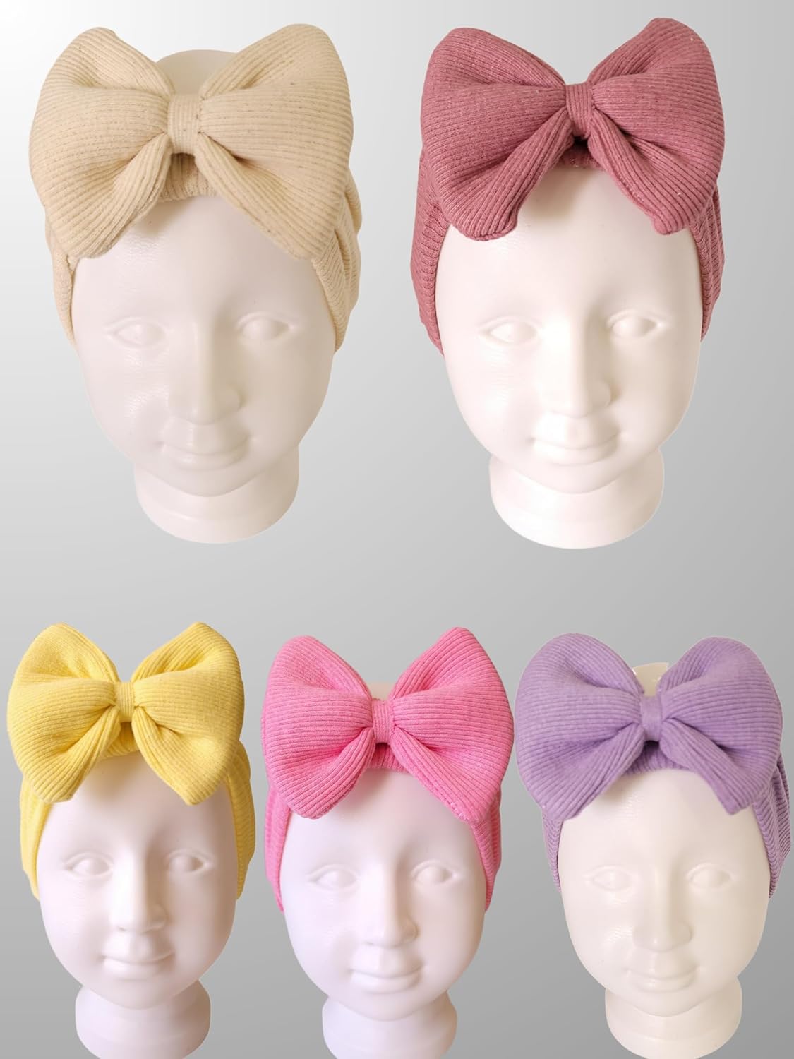 Seher Bebe Butik 5 pcs Baby Girls Nylon Headbands Turban Hair Bows Hair Band Elastic Hair Accessories for Kids Toddlers Infants Newborn (COLOR 1)