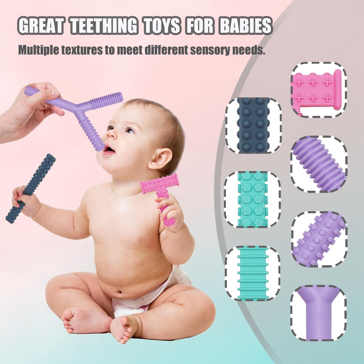 ★ 4 PACK TEETHING TUBES – Our chew toys for sensory kids set includes 4 popular items: I shape*2, T shape*1, Y shape*1. There is always one that your kids may like.