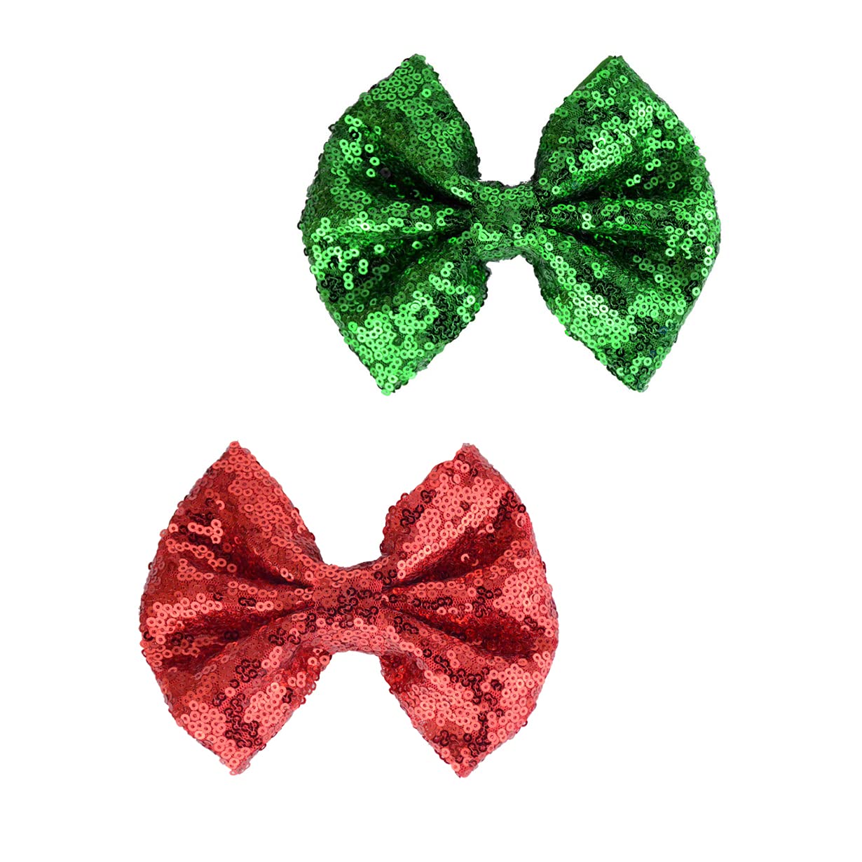 Sequin Bows for Girls Hair Bow Clips Kids Girls Sequin Bows Hair Clip Pin BBG51 (Set-Green Red)