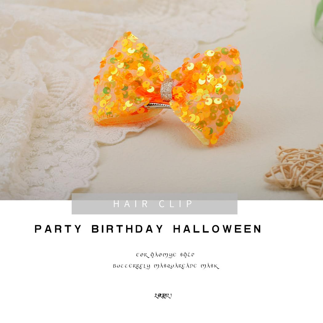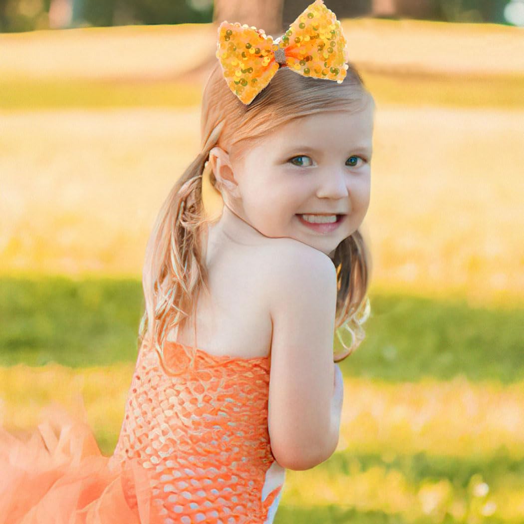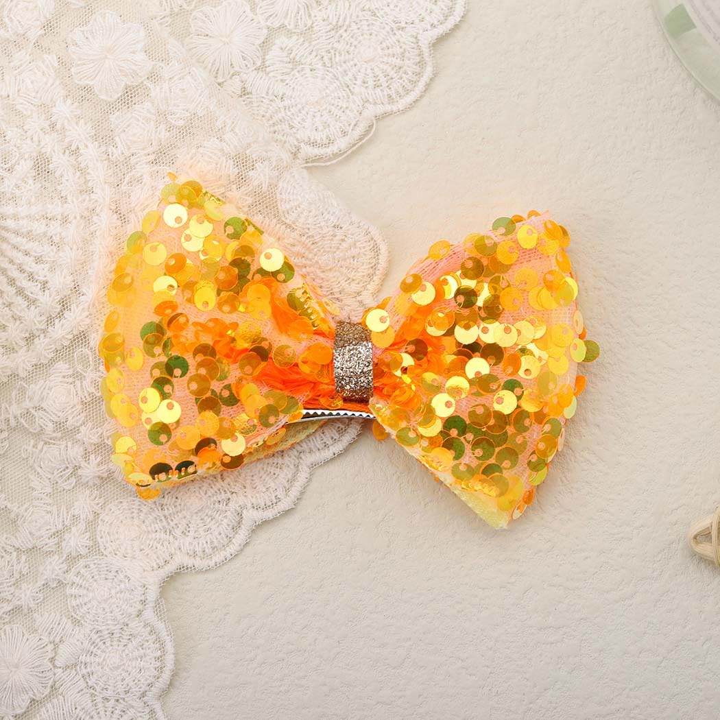 Sequin Bows Hair Clip Glitter Sparkle Bowkont Hairpins Cute Baby Barrettes Headpiece Bow Kont Hair Pin for Girls Toddlers Kids(Orange)
