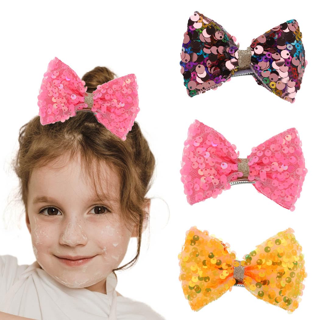 Cute baby hair clips design with sequin bow, available in Pink and colorful. Glitter sparkle bowkont hair jewelry make you stand out from the crowd and shine sparkly.