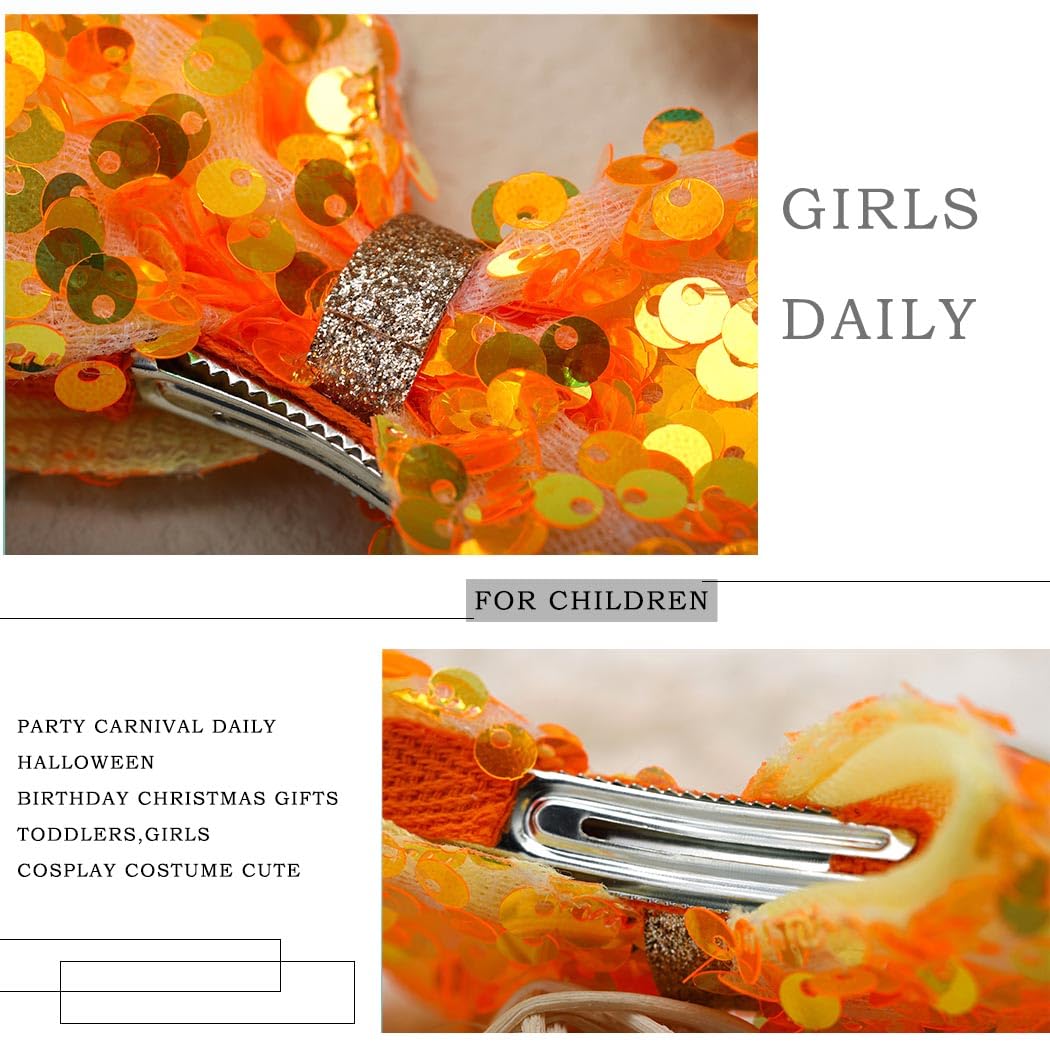 Sequin Bows Hair Clip Glitter Sparkle Bowkont Hairpins Cute Baby Barrettes Headpiece Bow Kont Hair Pin for Girls Toddlers Kids(Orange)