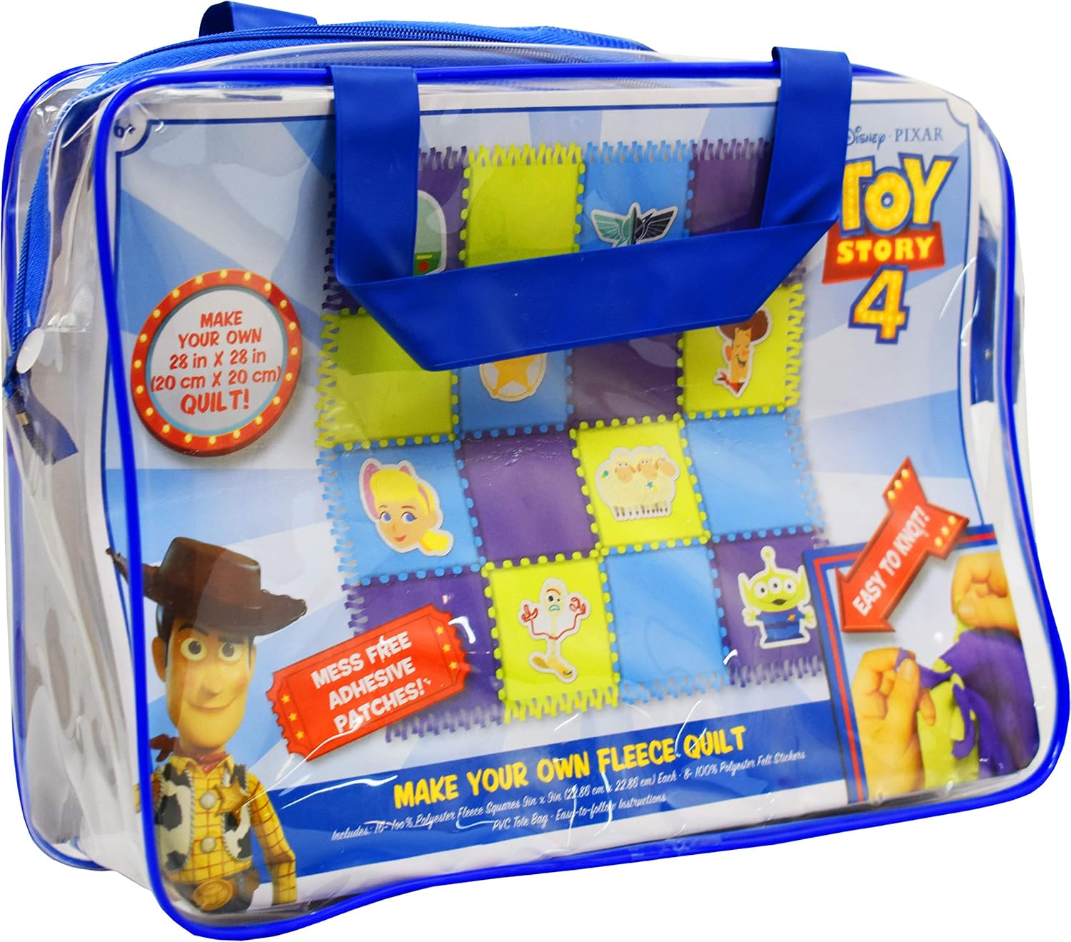 Set of 2 Toy Story 4 DIY Fleece Quilt Kit – Mess Free Adhesive Patches – Measures 28″x28″ – Great for Birthdays and Holiday Gifts! – Easy and Simple Fun!