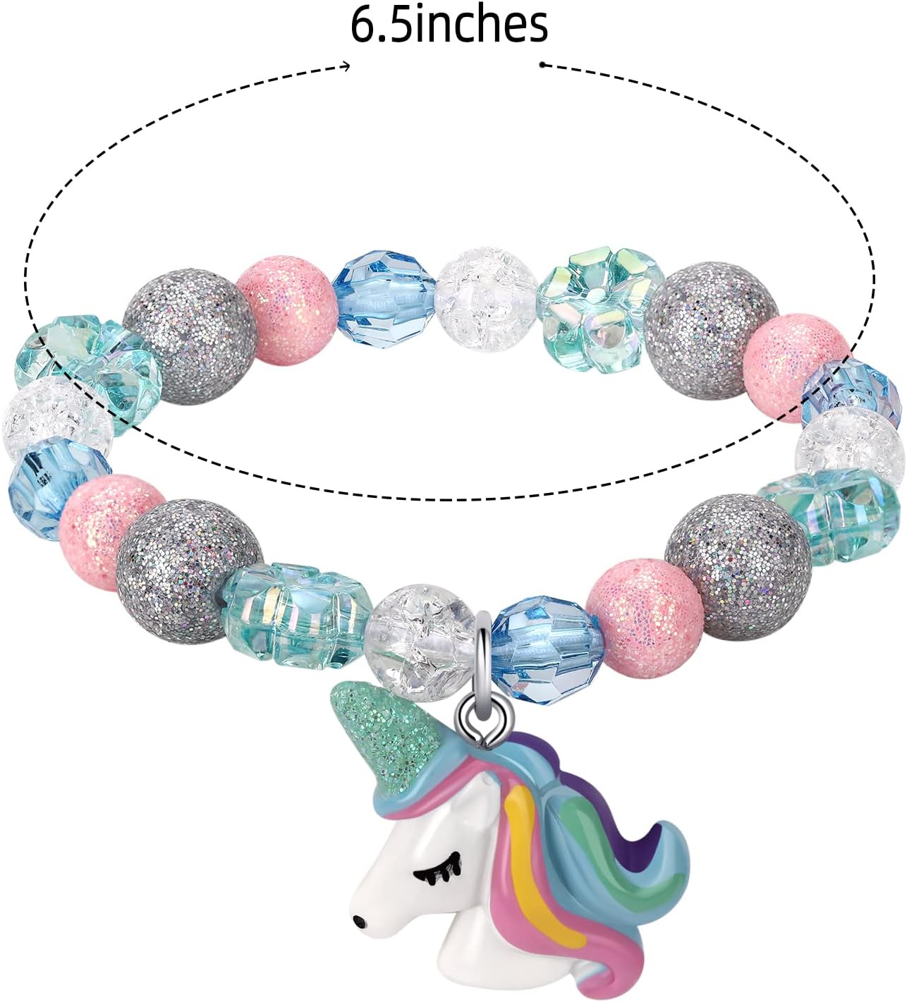 Set of 6 Unicorn Rainbow Bracelets, Little Girl Animal Bracelets, Teens Kids Unicorn Pendant Beaded Bracelet Girl Party Favor Pretend Play Bracelet