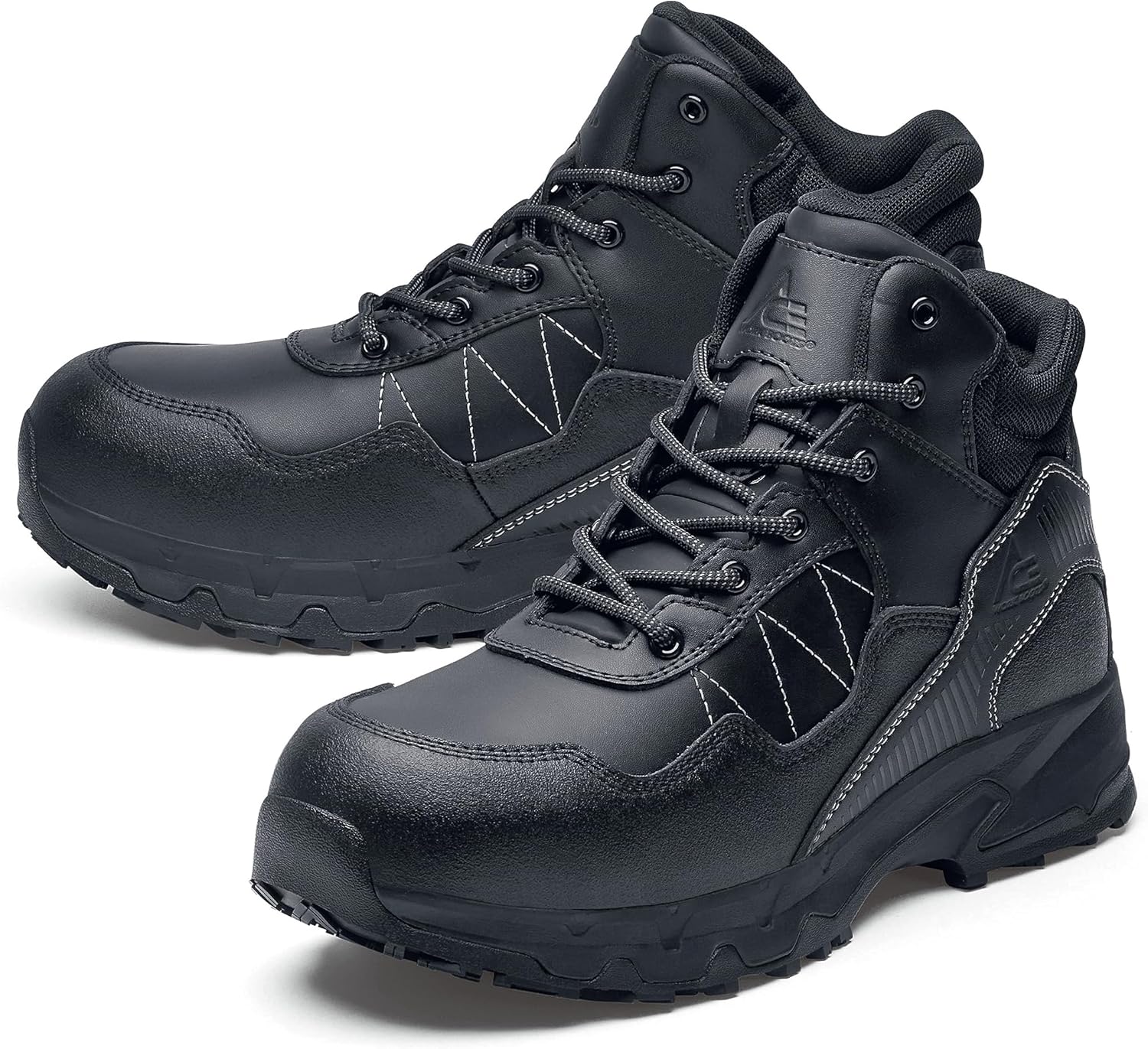 Shoes for Crews Piston Low and Mid, Men’s, Women’s, Unisex Soft Toe Slip Resistant Work Shoes, Water Resistant, Black