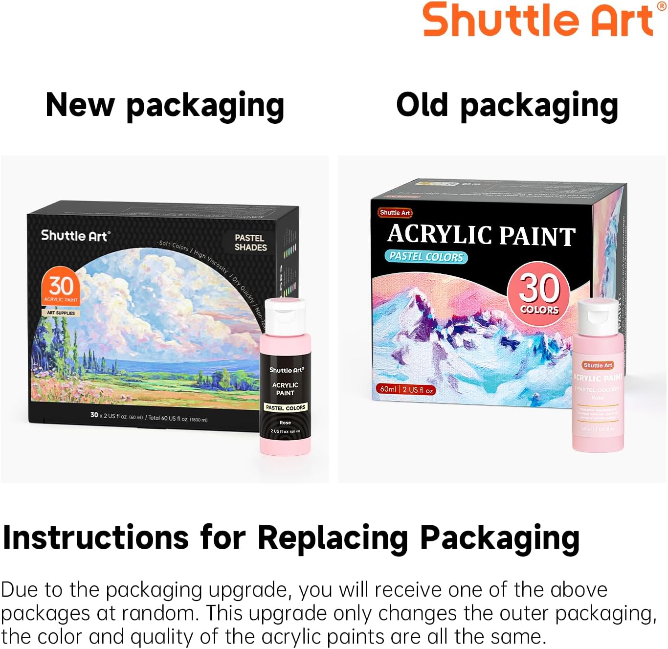 30 PASTEL COLORS: Shuttle Art pastel colors acrylic paint set come with 30 soft pastel colors acrylic paint in 60ml/2oz bottles, and 10 paint brushes for painting and crafting. Pastel tones are perfect for creating lovely and dreamy art projects, and widely applied on warm and romantic backgrounds.