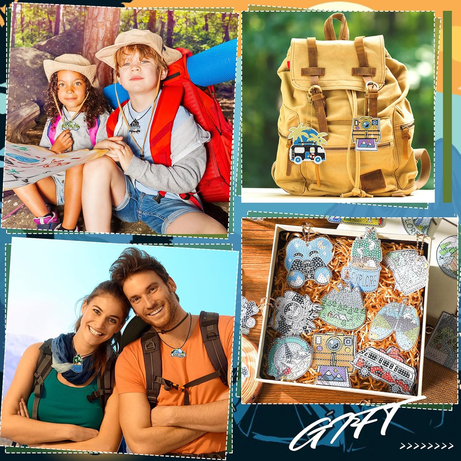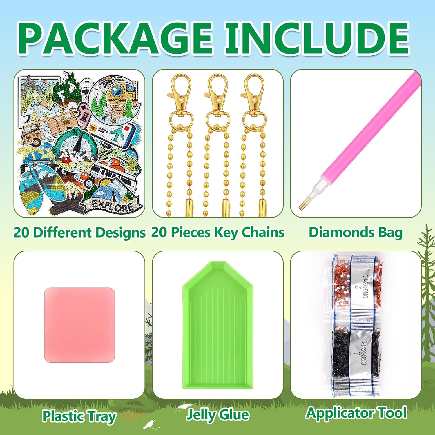 Enough for DIY or Sharing: there are 20 pieces of camping diamond painting keychain kits with tools, which are ideal for those who love DIY; The large quantity is enough for multiple projects or to share with friends and family