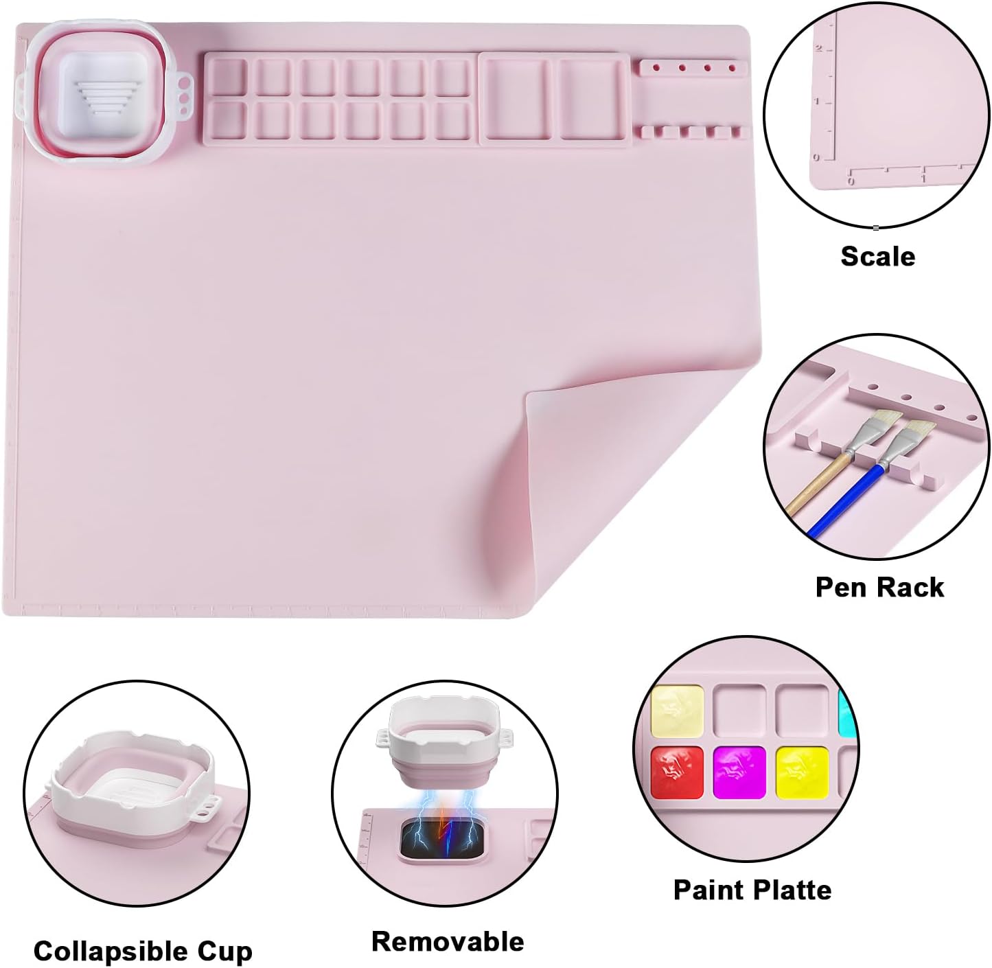 Silicone Craft Mat, 20″x16″ Silicone Painting Mat with Cup, Nonstick Silicone Sheet for Resin Jewelry Casting, Creator Silicone Mat for Art, DIY, Drawing, Clay and Play Doh