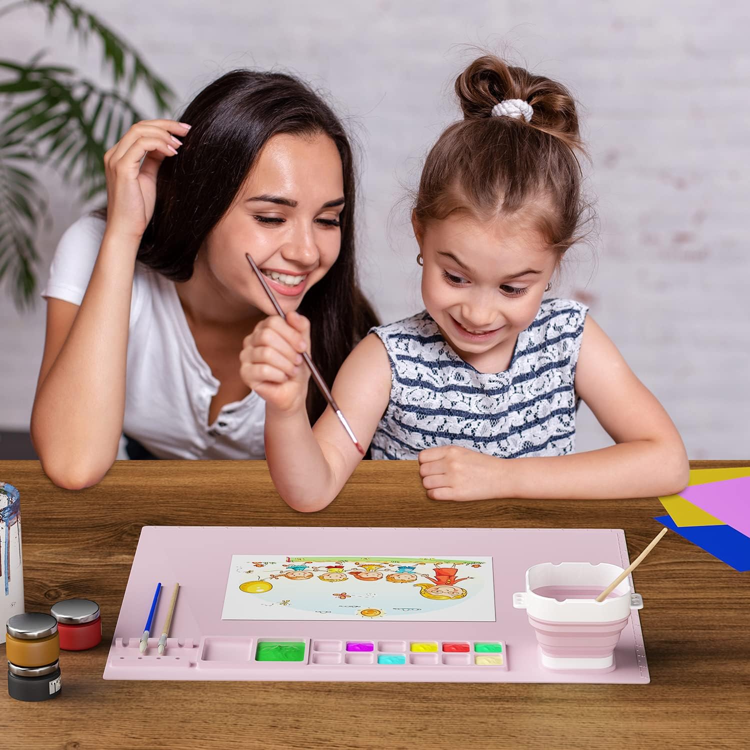 【Easy to Clean & Store】: The Silicone painting mat are washable, can be cleaned with boiling water or cold water, clean with cloth and warm soapy water wipe. Easy to fold or roll up, takes up minimal space, convenient to store and carry on.