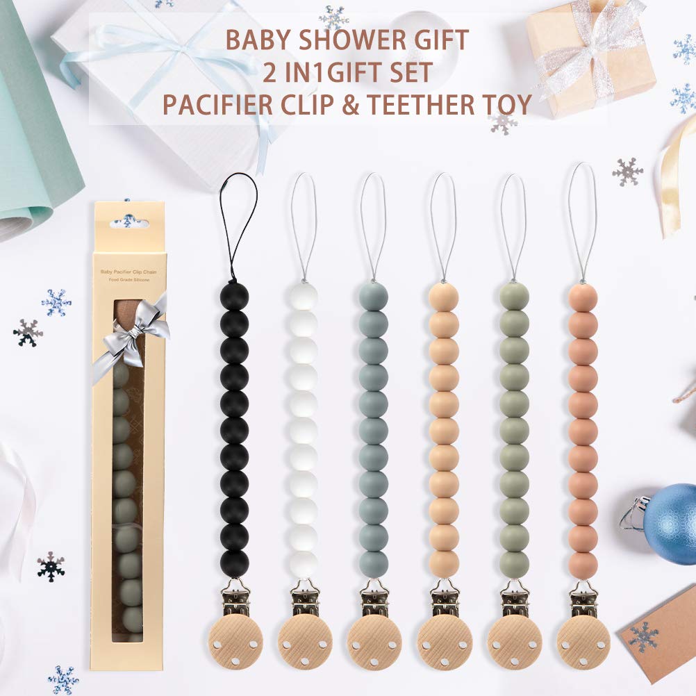 Silicone Pacifier Clip Holder for Baby, Fits Most Pacifier Styles, BPA-Free (2 Pack (White+Black))