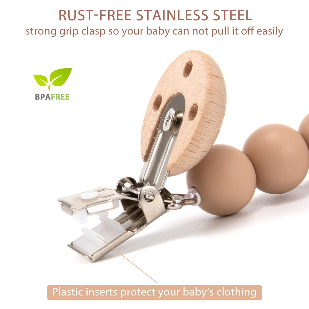 Silicone Pacifier Clip Holder for Baby, Fits Most Pacifier Styles, BPA-Free (2 Pack (White+Black))