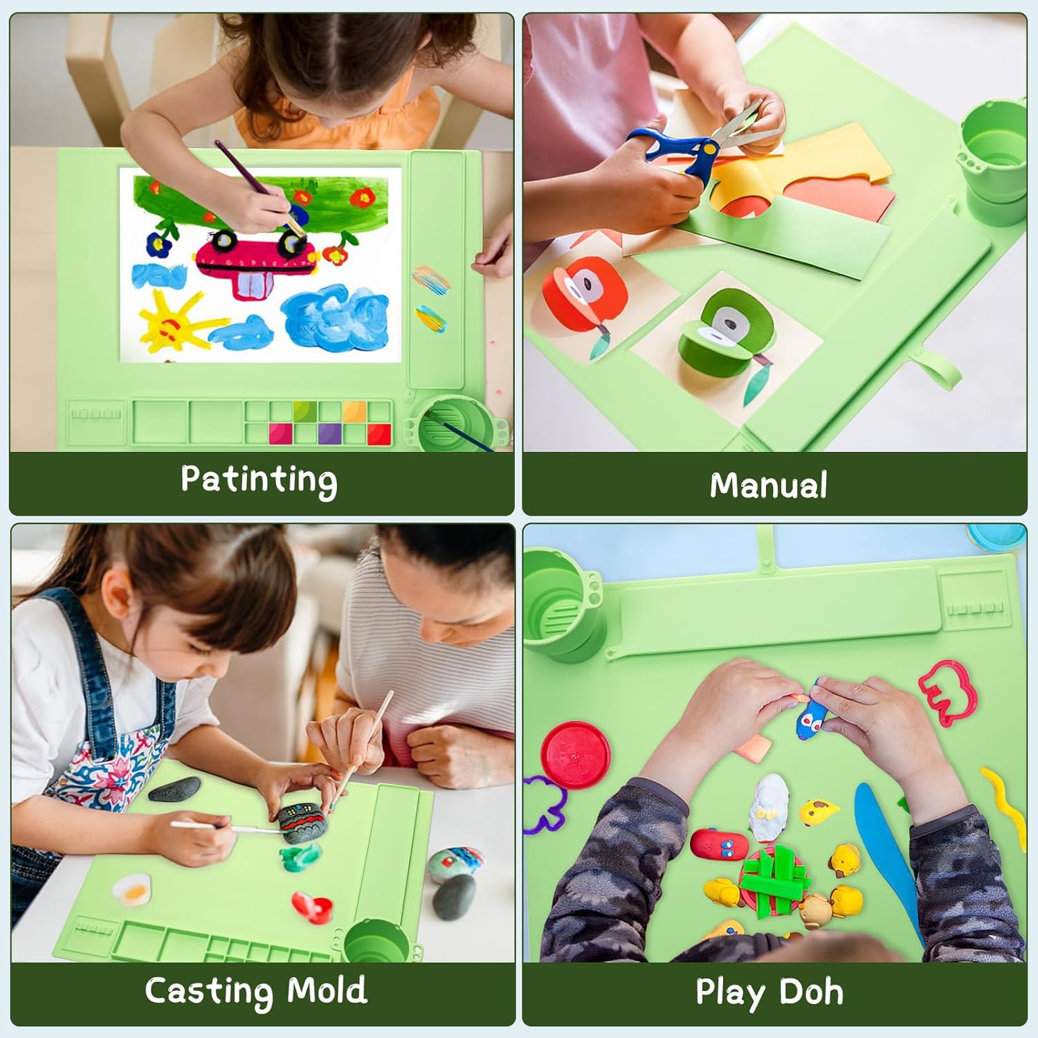 Silicone Painting Mat,20″×16″ Silicone Craft Mat with Cup and Palette,Silicone Art Mat,Non Stick Silicone Sheet for DIY, Clay, Play Doh, Green