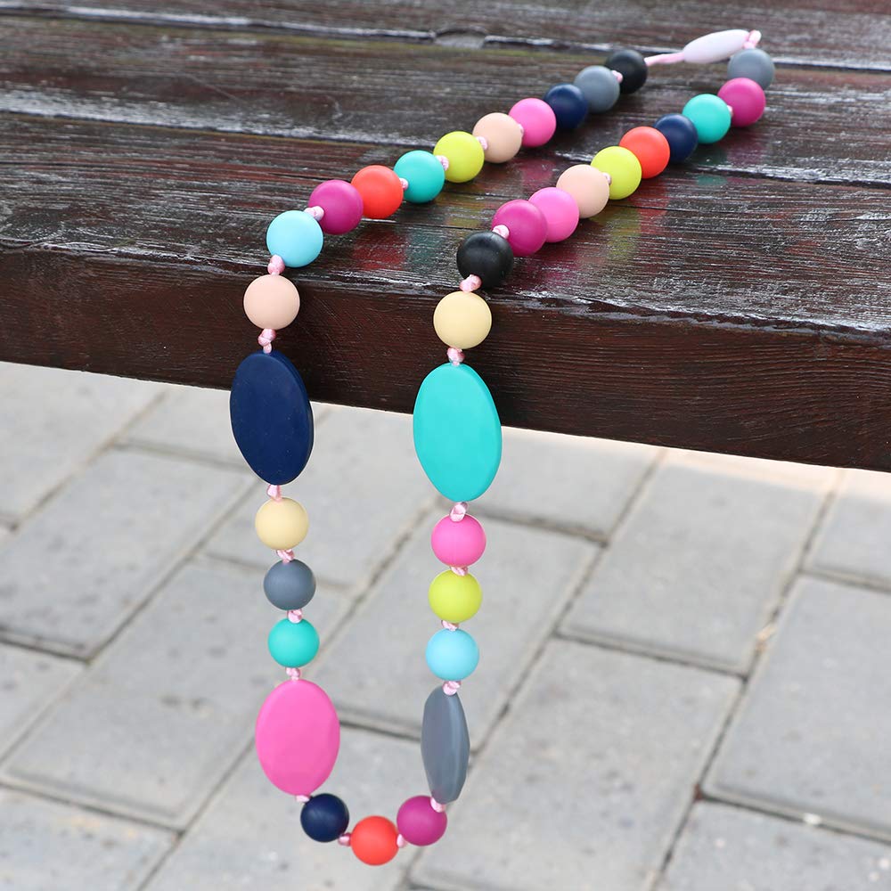 ★ SAFETY DESIGN – Flyaway chew necklace for baby girl and boy has breakaway clasps and individually knotted for prevent choke hazard. Silky smooth cord will not pull your hair.