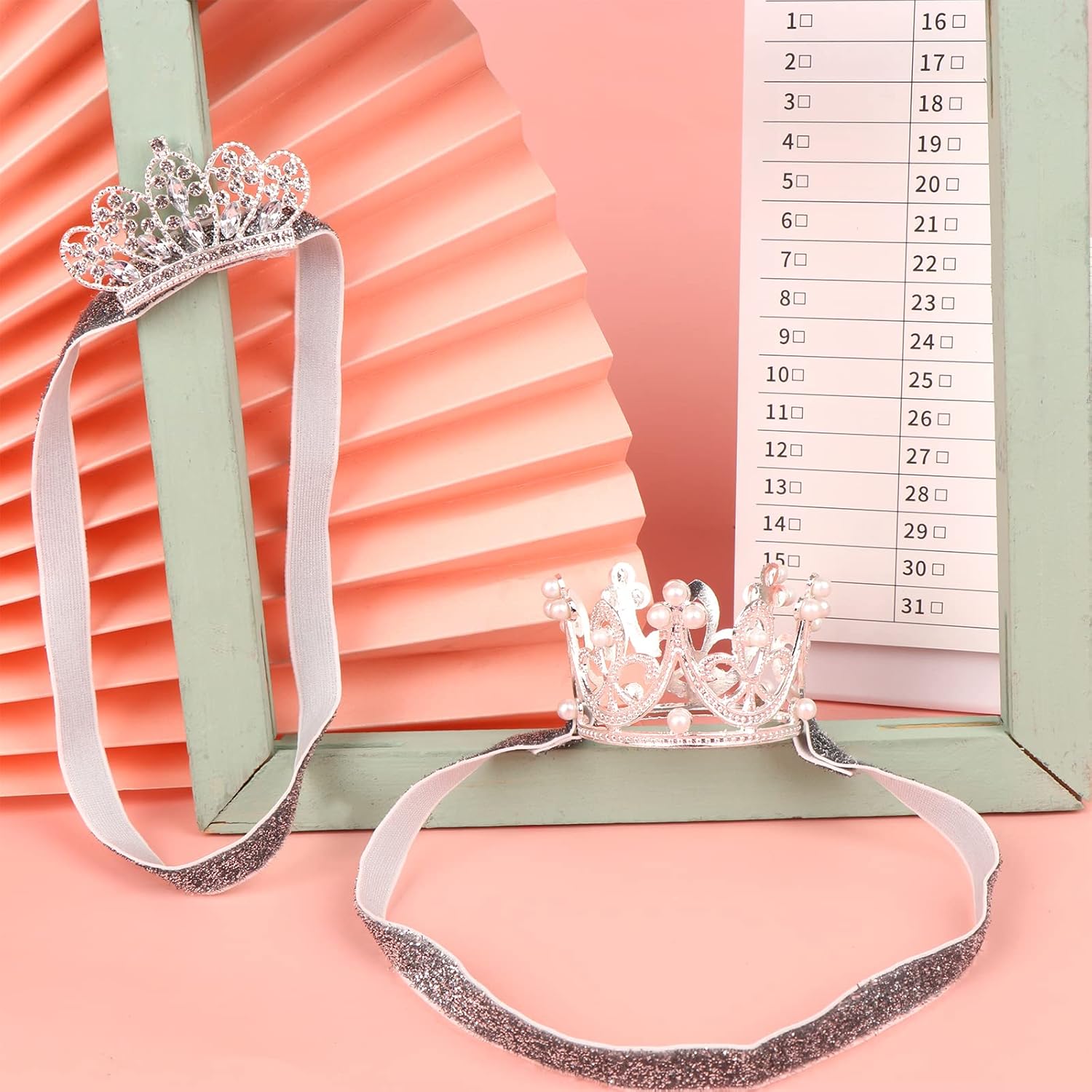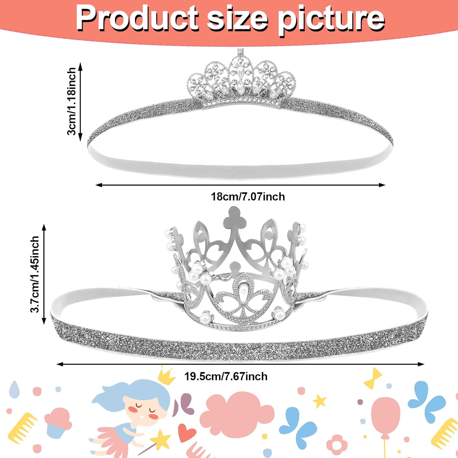 Silver Baby Crown Baby Tiara Baby Crown Headband Crystal Crown Hair Belt for Little Girl Infant Princess Tiaras Birthday Elastic Hair Band for Photography Headband Props