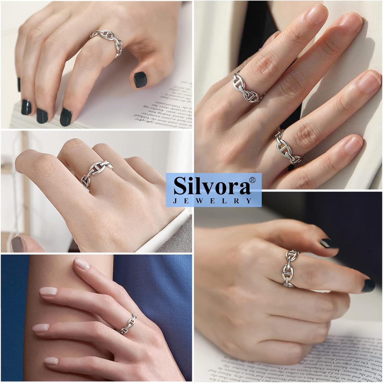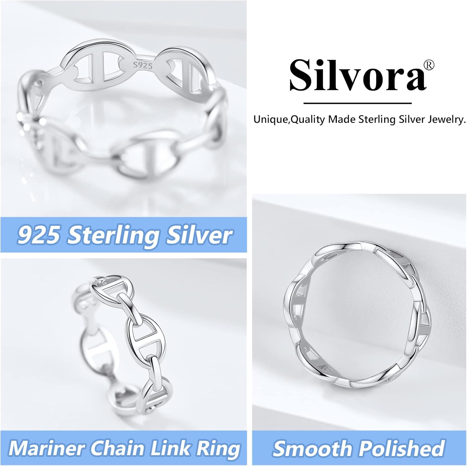 Silvora 925 Sterling Silver Mariner Chain Link Rings, Chain Rings for Women Men Vintage Eternity Band Ring Jewelry Size 6-12