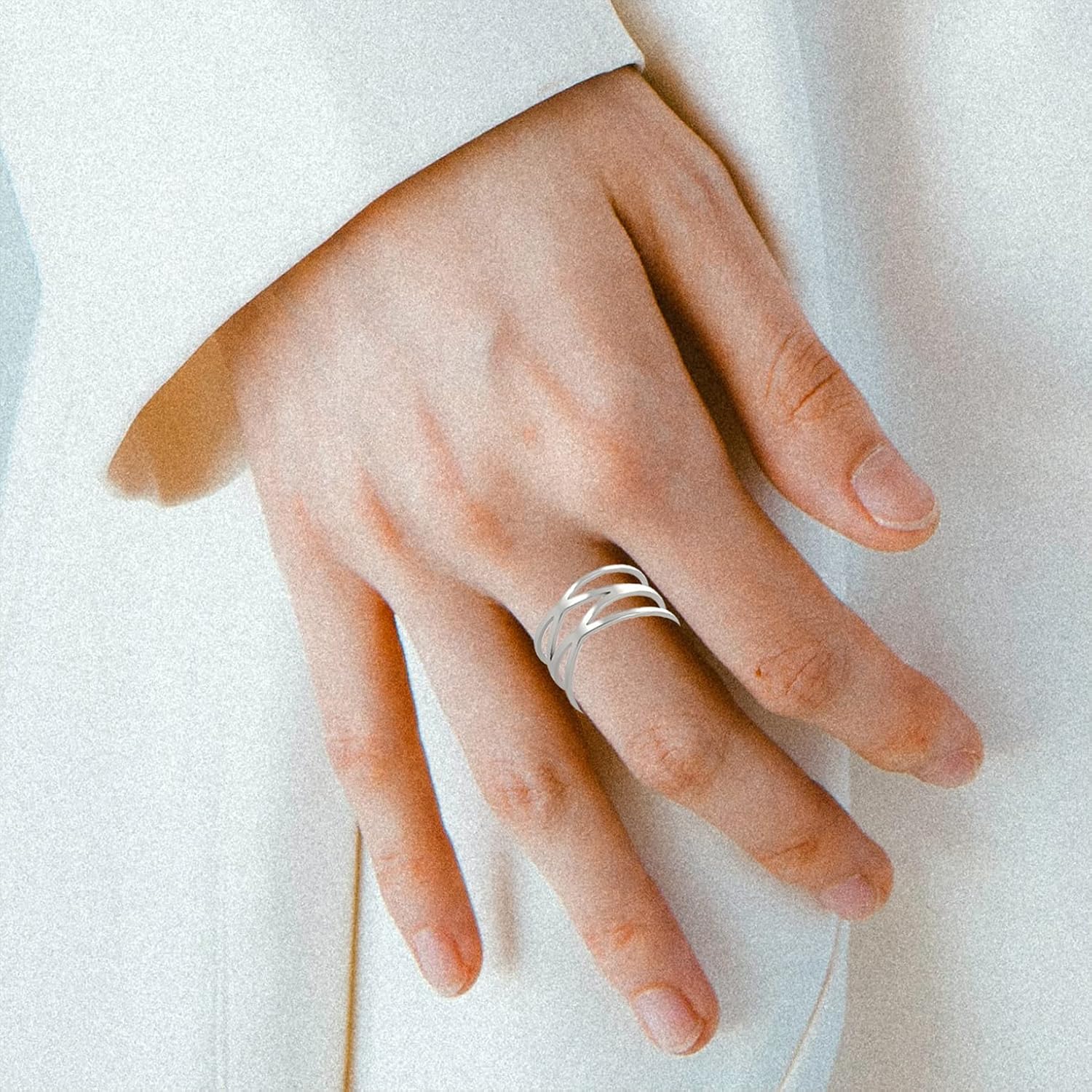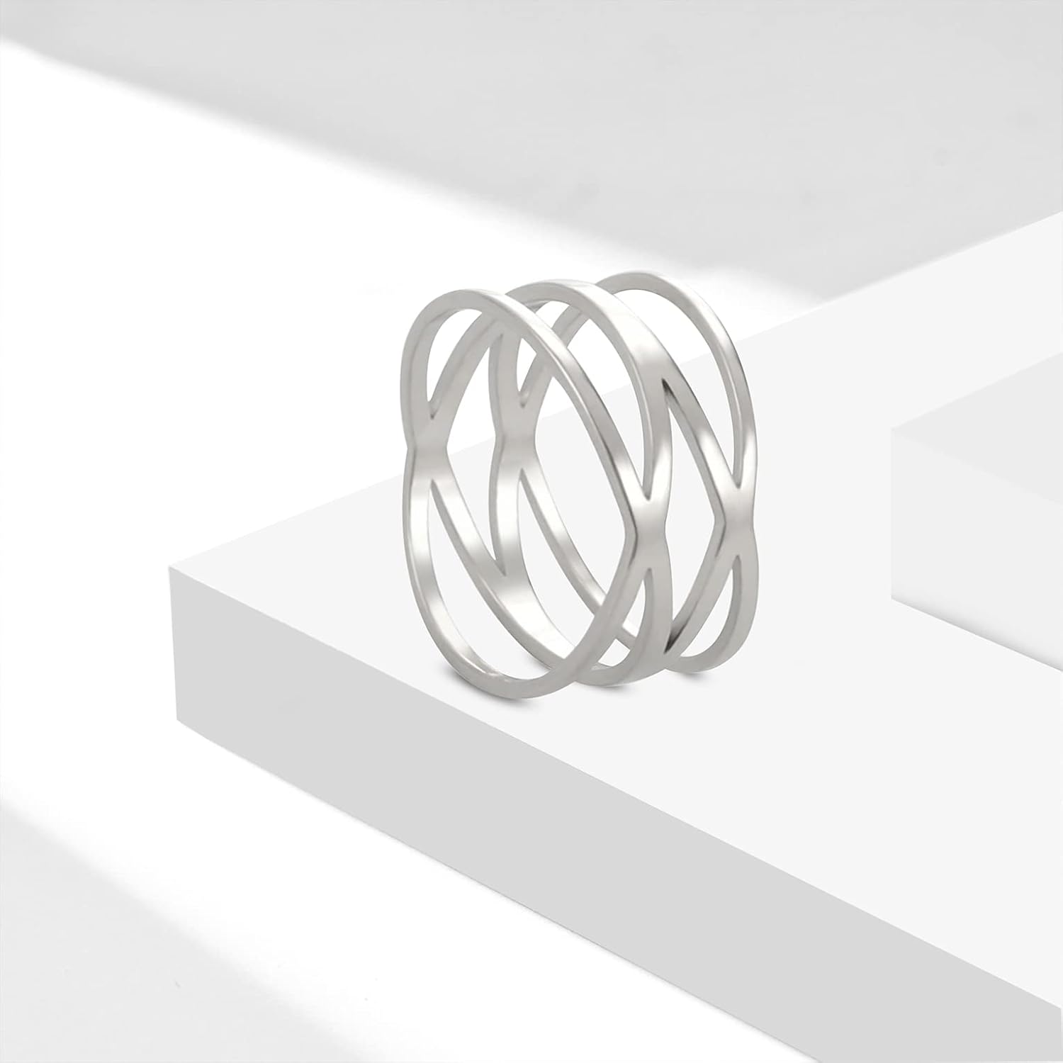 Simple Multi Rows Cross/Parallel Lines Knot Bar Ring,Platinum Plated Sterling Silver Punk Biker Gothic Cocktail Party Thumb Index Finger Bands Ring for Women Girls