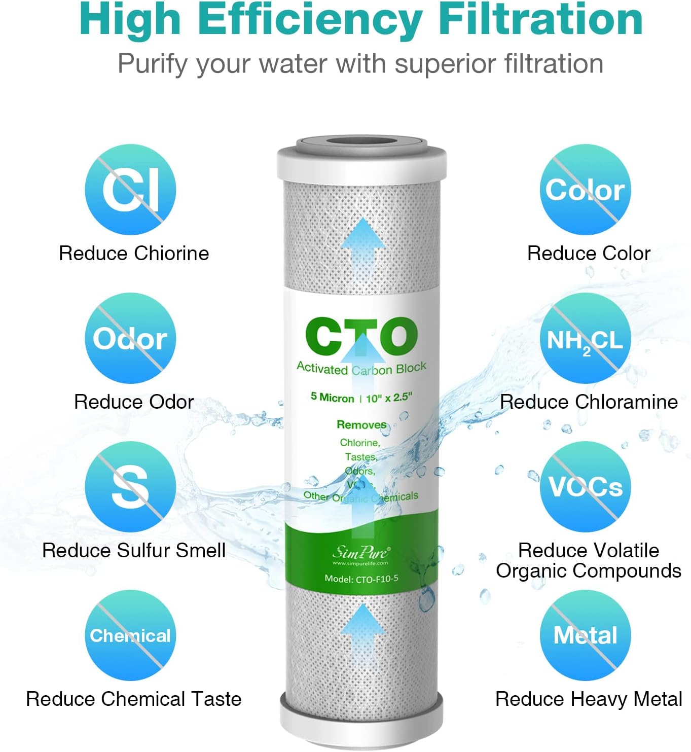 💧[𝐖𝐇𝐘 𝟓 𝐌𝐈𝐂𝐑𝐎𝐍]5-micron one is the most popular carbon water filter at present. Compared with higher micron rating filters, it reaches a balance of sufficient residual chlorine removal and high water flux. SimPure is 30% more efficient than most water filters. 𝐓𝐡𝐞 𝐂𝐓𝐎 𝐟𝐢𝐥𝐭𝐞𝐫 𝐞𝐥𝐞𝐦𝐞𝐧𝐭 𝐜𝐚𝐧𝐧𝐨𝐭 𝐟𝐢𝐥𝐭𝐞𝐫 𝐭𝐡𝐞 𝐰𝐞𝐥𝐥 𝐰𝐚𝐭𝐞𝐫 𝐚𝐥𝐨𝐧𝐞, 𝐩𝐥𝐞𝐚𝐬𝐞 𝐮𝐬𝐞 𝐢𝐭 𝐭𝐨𝐠𝐞𝐭𝐡𝐞𝐫 𝐰𝐢𝐭𝐡 𝐭𝐡𝐞 𝐌𝐏𝐏 𝐟𝐢𝐥𝐭𝐞𝐫 𝐞𝐥𝐞𝐦𝐞𝐧𝐭.