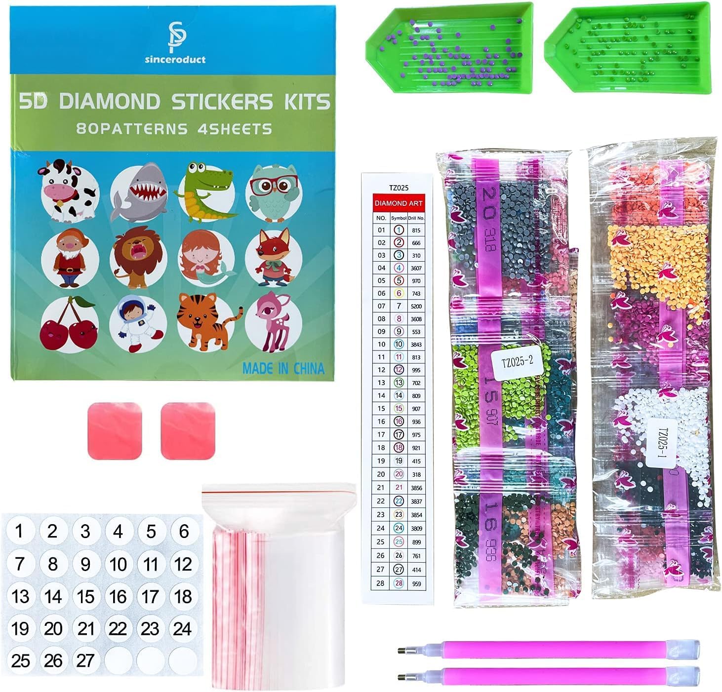 sinceroduct 80pcs Diamond Stickers for Kids – 5D DIY Gem Art Kits, Safe and Colorful Crafts for Girls, Boys, and Beginners