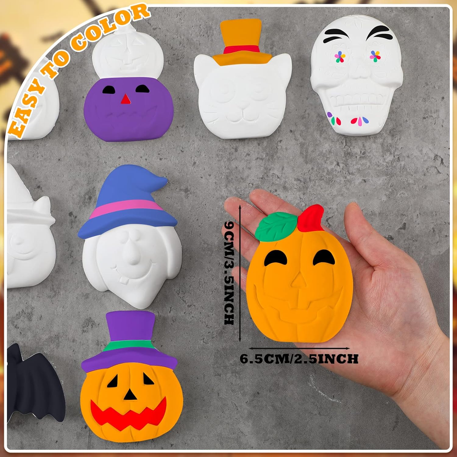 Sinmoe 12 Sets Arts and Crafts Set Painting Kit Unpainted DIY Ceramic Figurines Paint Your Own Figurines with 12 Magnet 2 Brushes and 1 Palette Ceramic Painting Kit for Toddler (Halloween)